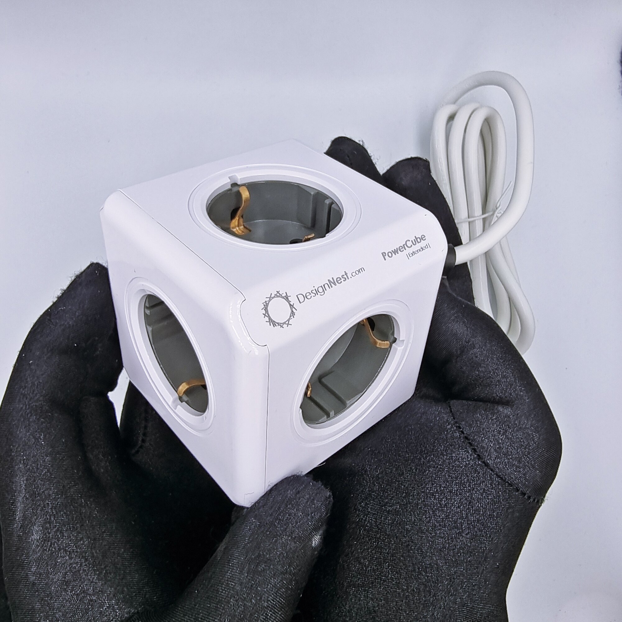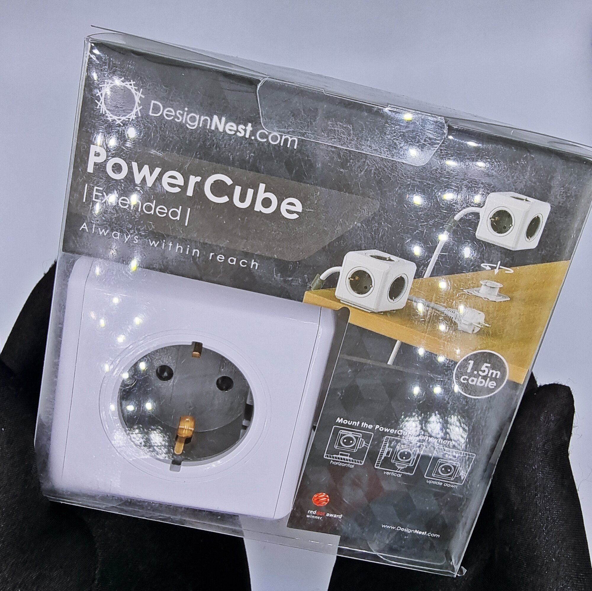 Фильтр сетевой (удлинитель) Allocacoc DesignNest PowerCube Extended GREY 1300GY/DEEXPC, 5 розеток, провод 1,5 метра, без USB, крепление в комплекте
