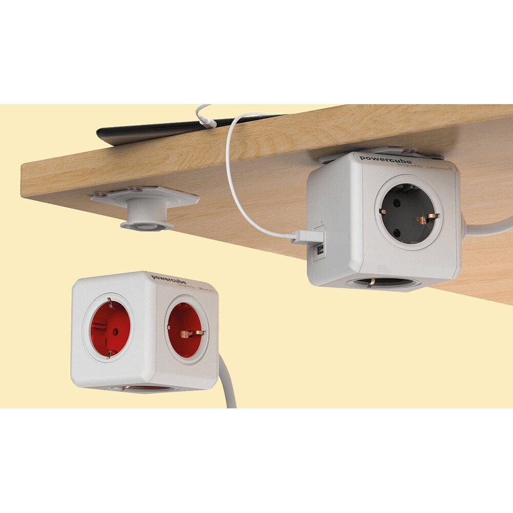 Сетевой удлинитель (фильтр) Allocacoc/DesignNest PowerCube Extended USB 1402RD/DEEUPC, 4 розетки, 2 USB, провод 1,5 метра, крепление в комплекте, красный