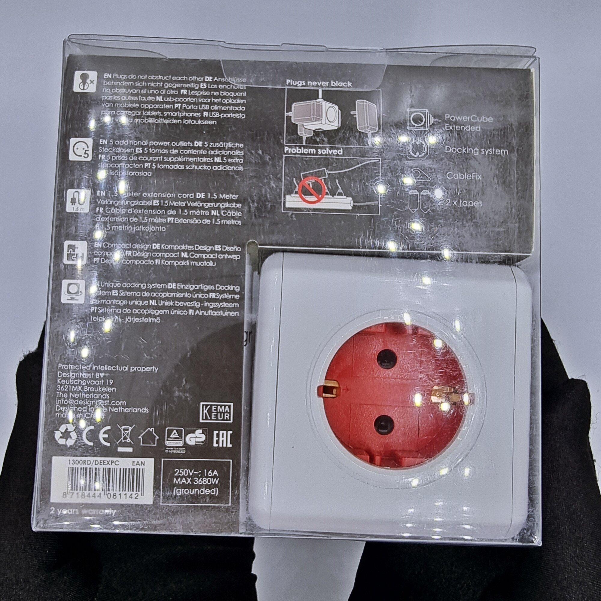 Фильтр сетевой (удлинитель) Allocacoc DesignNest PowerCube Extended RED 1300RD/DEEXPC, 5 розеток, провод 1,5 метра, без USB, крепление в комплекте