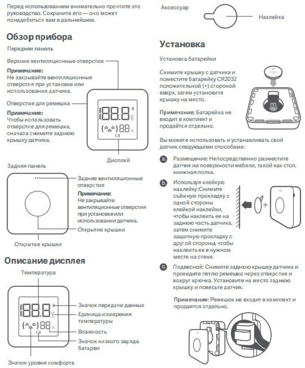 Синхронизация с умным домом от Xiaomi Цена Липучка в комплекте Крышка легко снимается для замены батарейки |