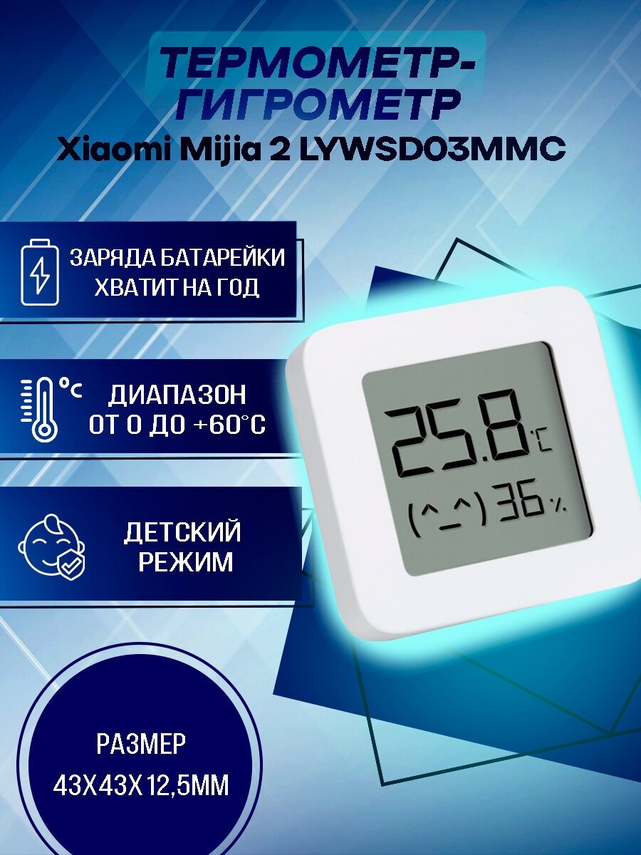 Датчик температуры и влажности Xiaomi Mi Temperature and Humidity Monitor 2, метеостанция, термометр, датчик, Умный дом, белый LYWSD03MMC