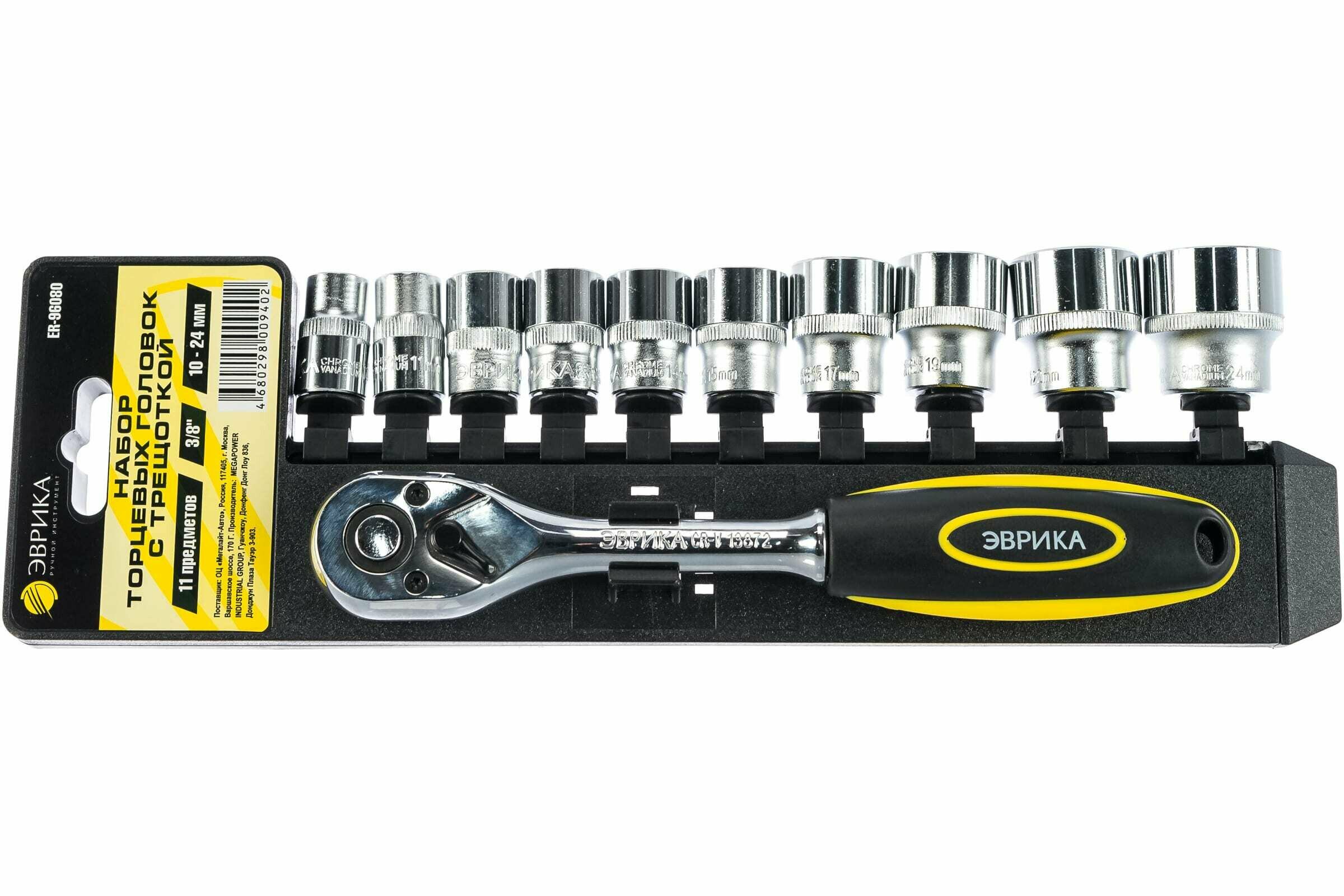 Набор головок торцевых 3/8" 10-24мм с трещоткой 11 предметов эврика ER-96080