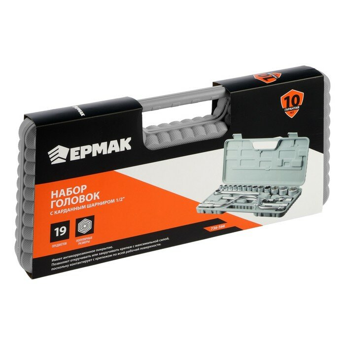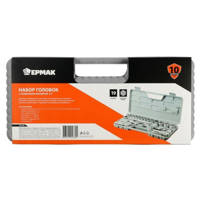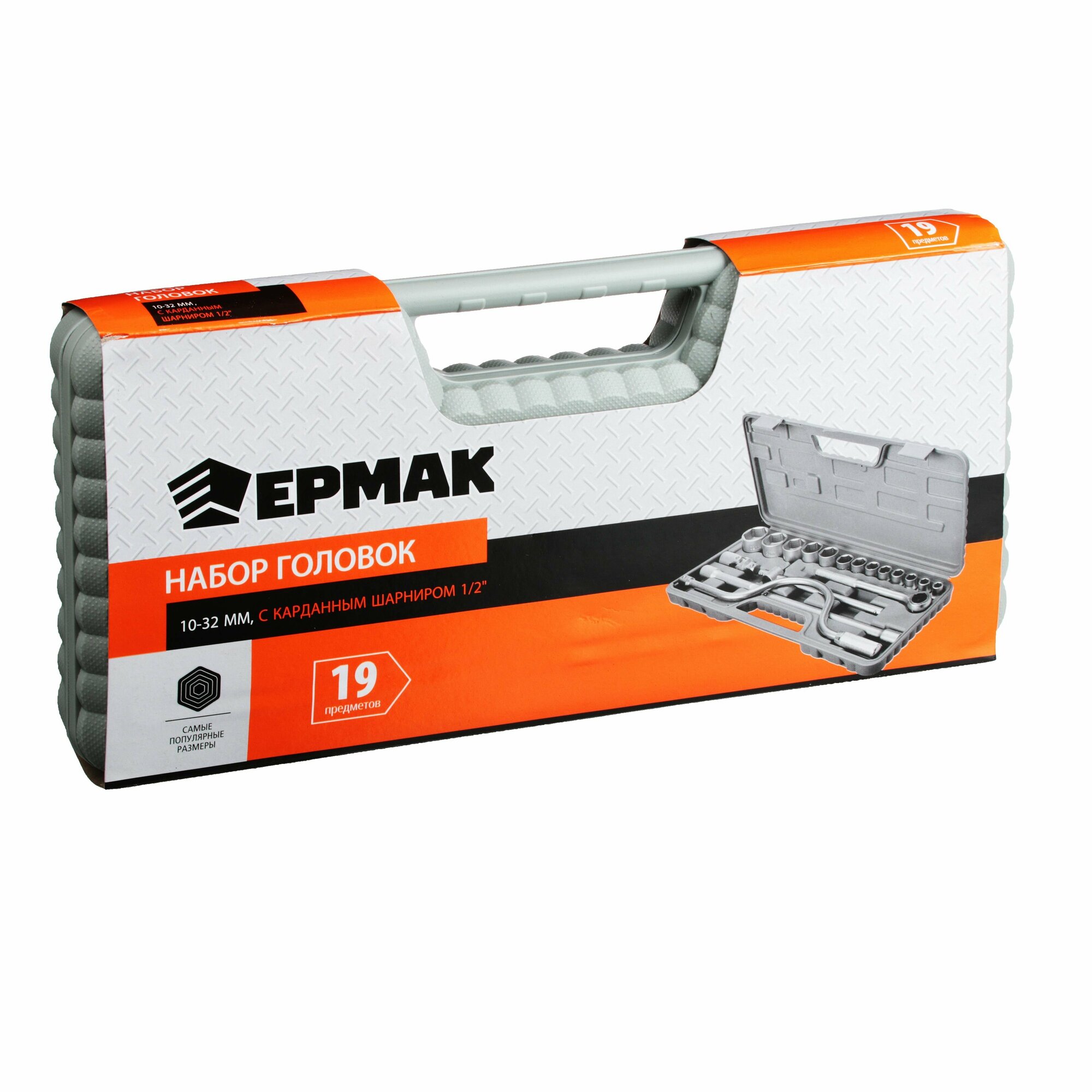 Ермак Набор головок, 19 предм., 10-32мм, с карданным шарниром 1/2"