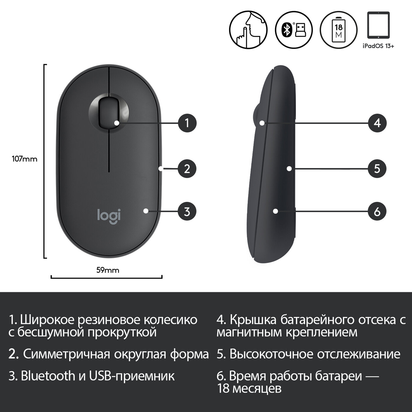 СохранитьМышь беспроводная Logitech Pebble M350 Graphite интересное: