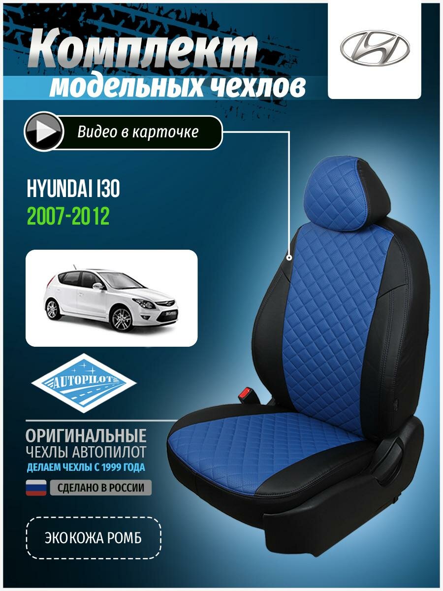 Чехлы для Hyundai I30 1 2007-2012 Автопилот Синий Экокожа с ромбом kha-a30-11-chesi-r