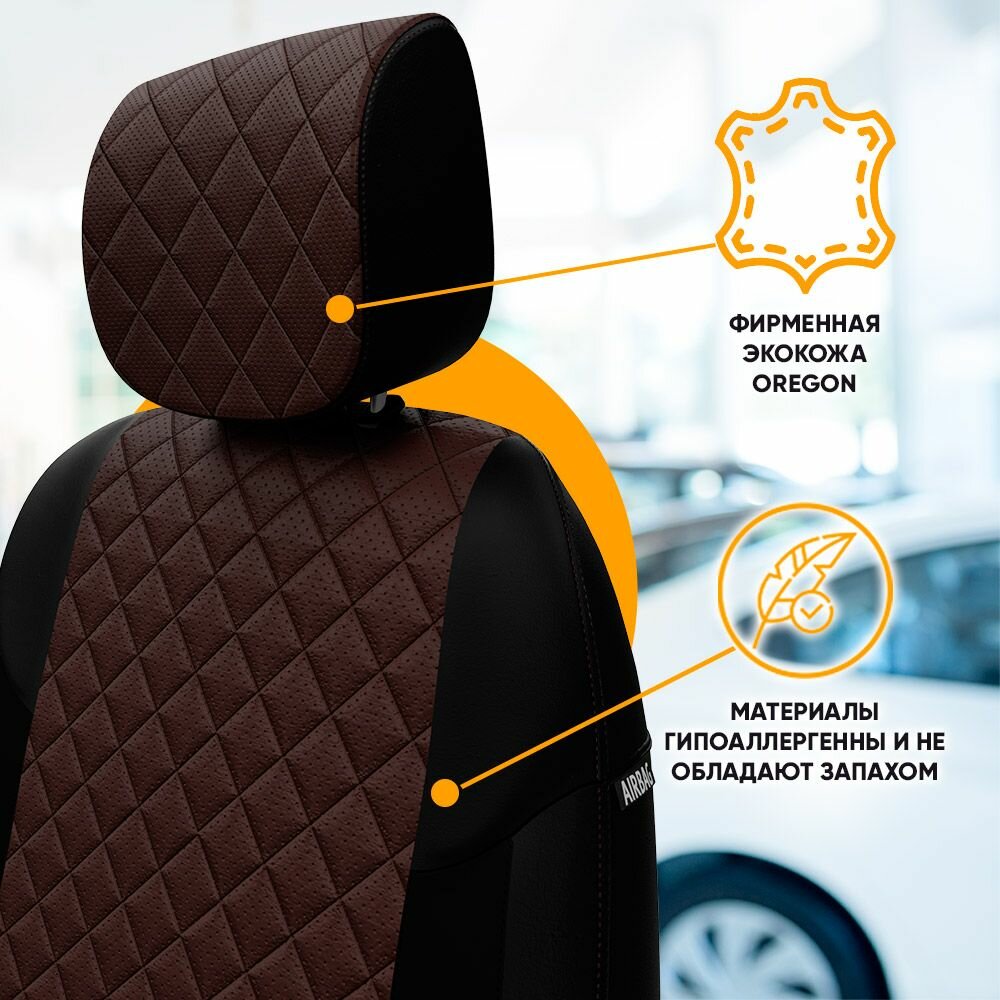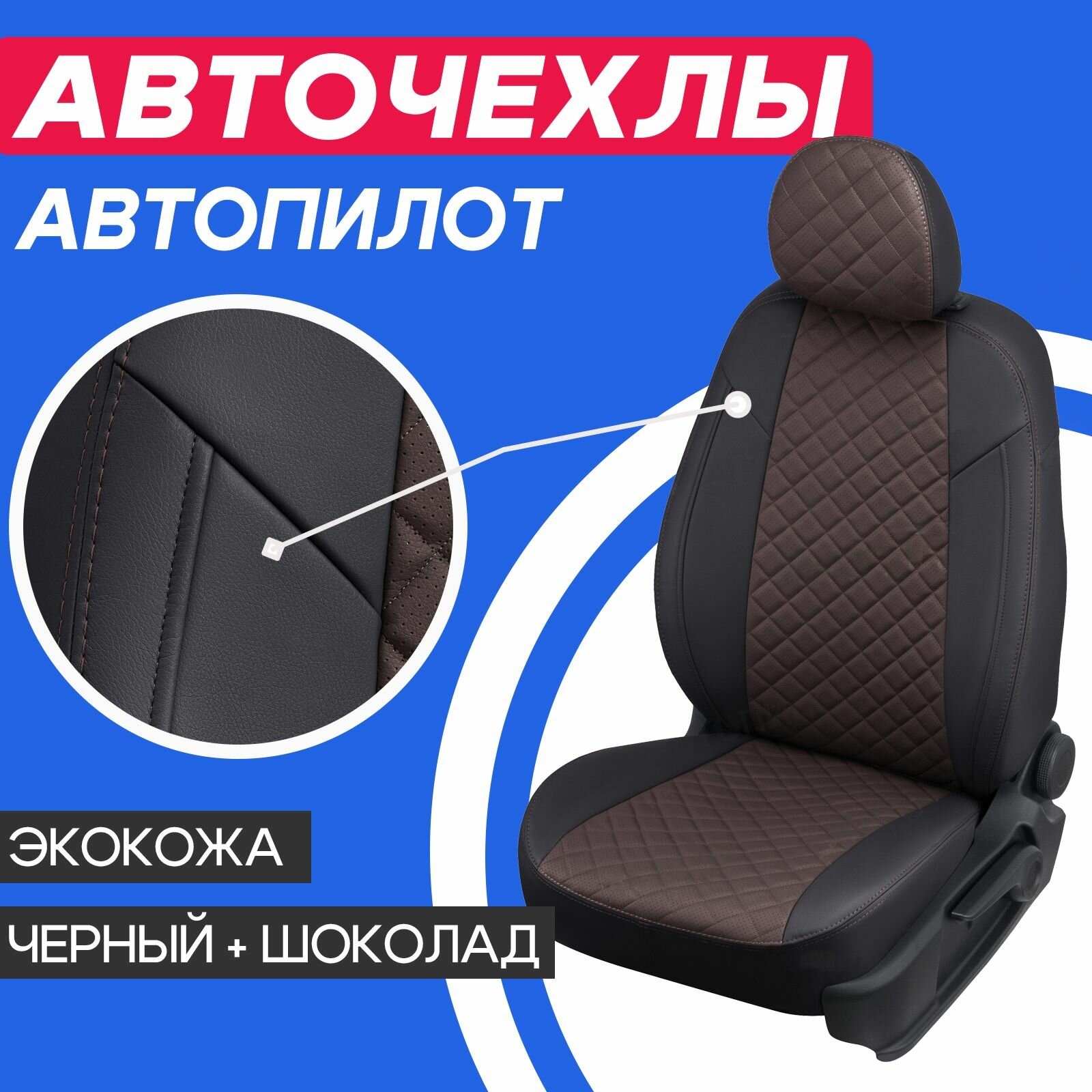Авточехлы для Chevrolet Cruze 1 2009-2015 Автопилот Шоколадный Экокожа с ромбом she-kr-kru-chesho-r