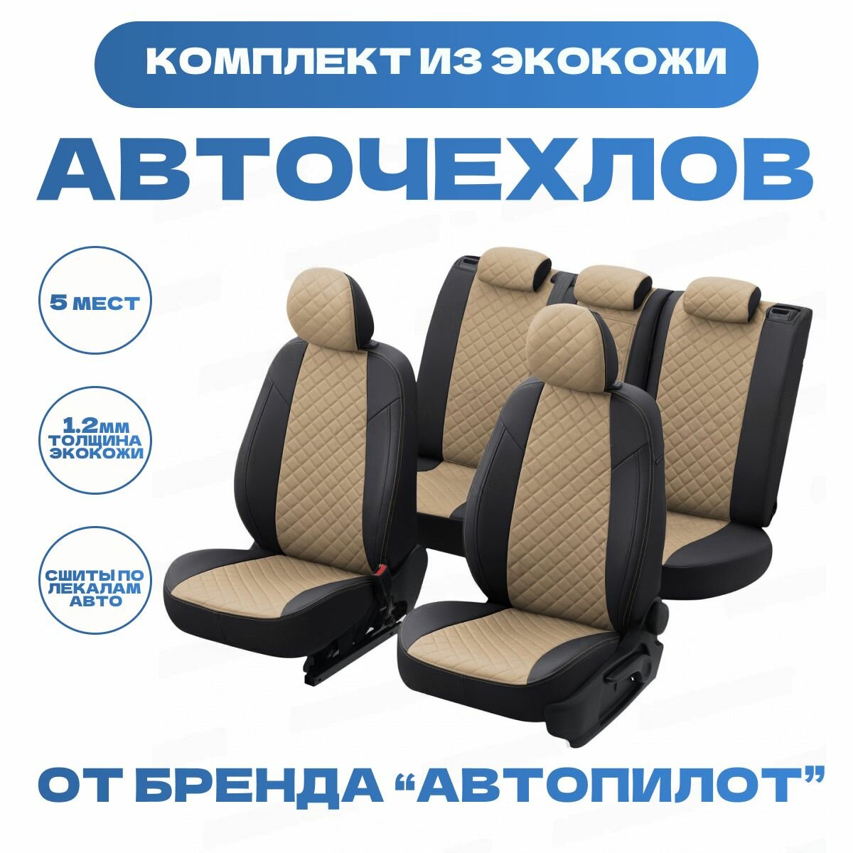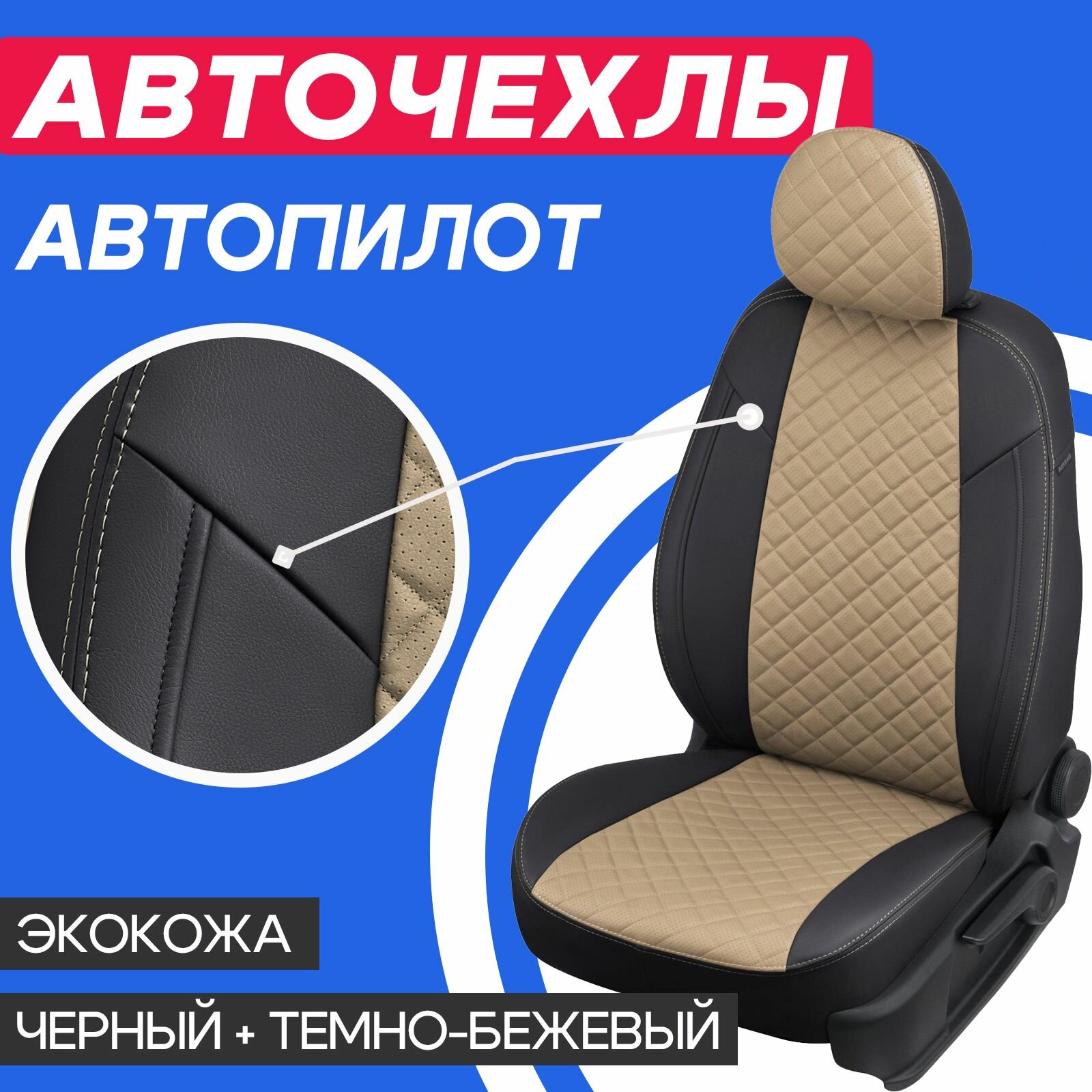 Чехлы на автомобильные сидения Автопилот для Chevrolet Cruze Sd/Hb/Wag с 09-15г. (Экокожа ромб, Черный + Темно-бежевый)