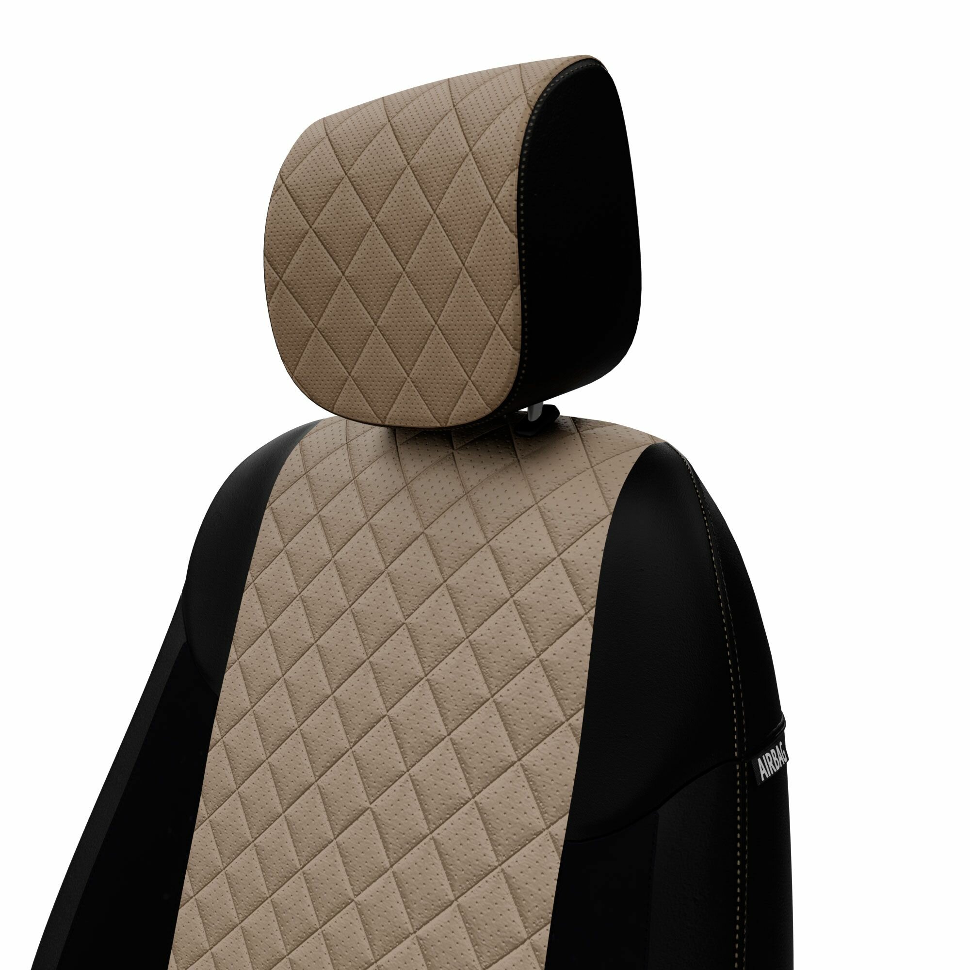 Авточехлы на Chevrolet Cruze "Ромб" экокожа, черный/темно-бежевый