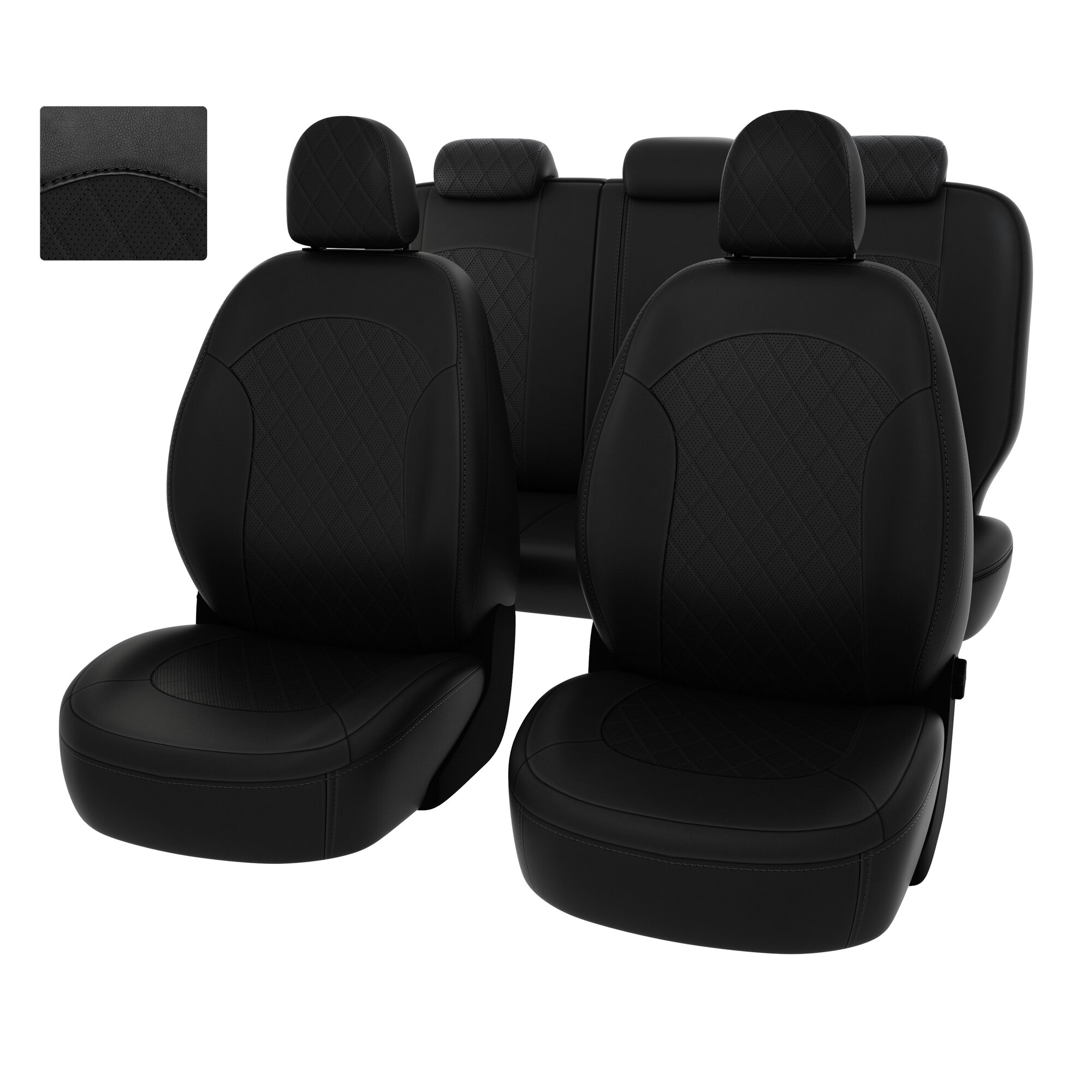 Чехлы в машину PSV для Hyundai ix35 2010-2015 г. - ромб/черная экокожа + черная алькантара "Оригинал"