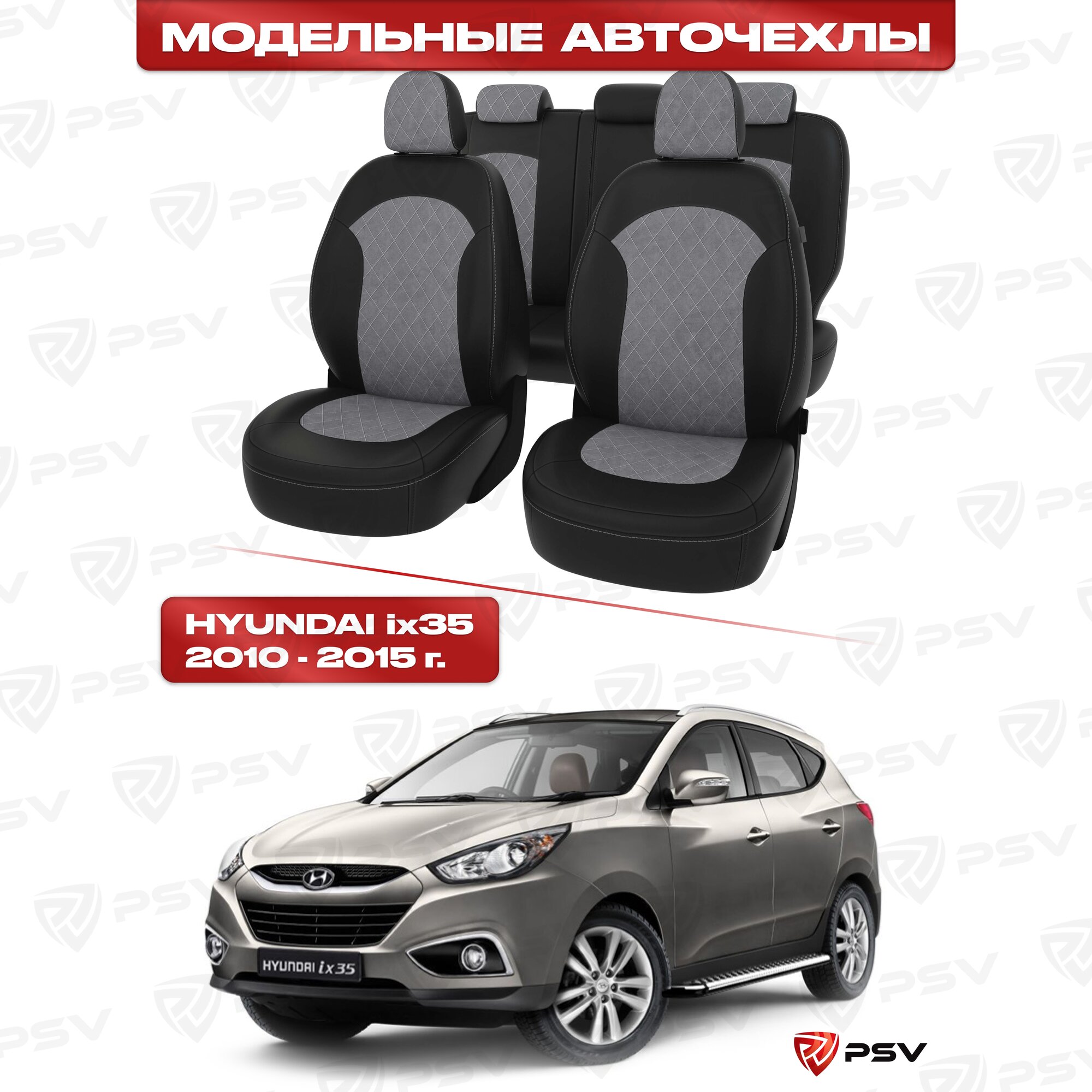Чехлы в машину PSV для Hyundai ix35 2010-2015 г. - черно-серая экокожа "Оригинал"