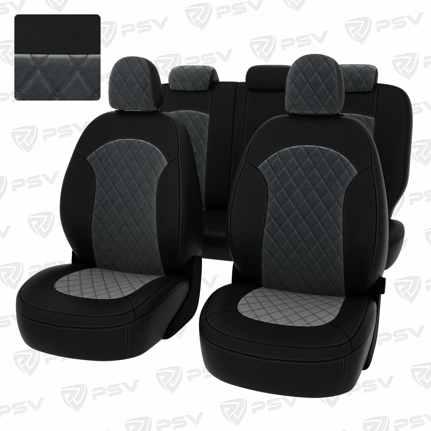 Чехлы в машину PSV для Hyundai ix35 2010-2015 г - ромб /отстрочка серая, черная экокожа + серая алькантара "Оригинал"