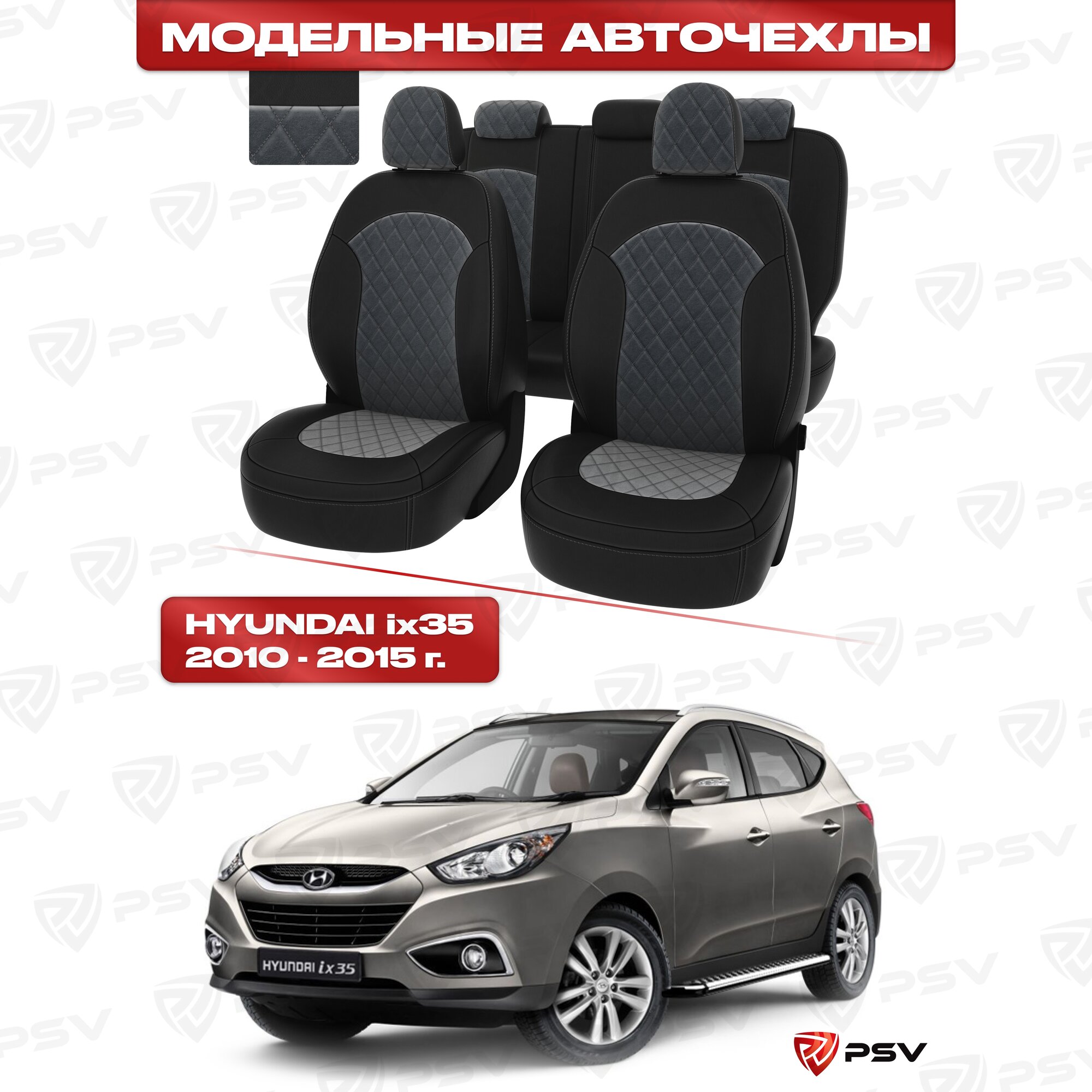 СохранитьЧехлы в машину PSV для Hyundai ix35 2010-2015 г. - ромб/отстрочка серая, черная экокожа + серый велюр "Оригинал" интересное: