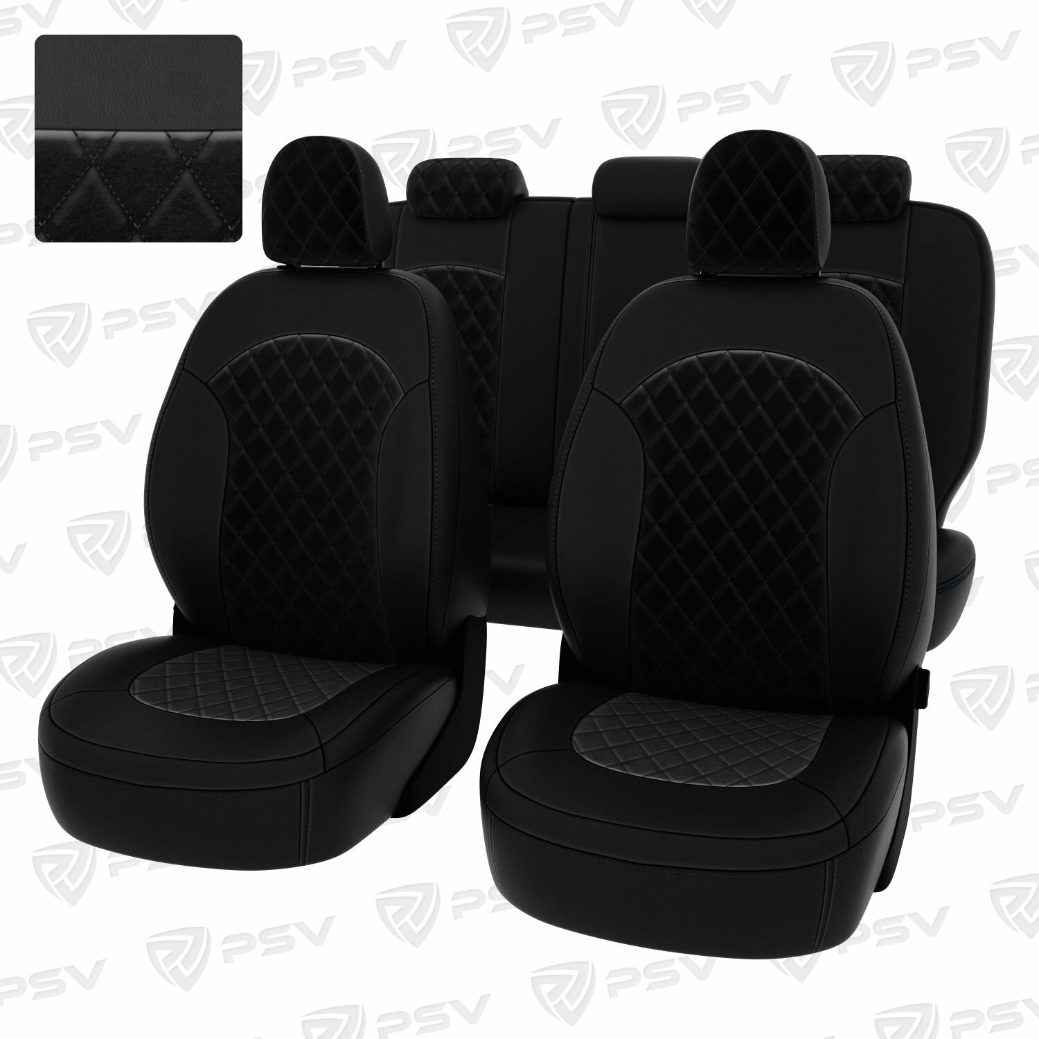 Чехлы в машину PSV для Hyundai ix35 2010-2015 г. - ромб/отстрочка черная, черная экокожа "Оригинал"