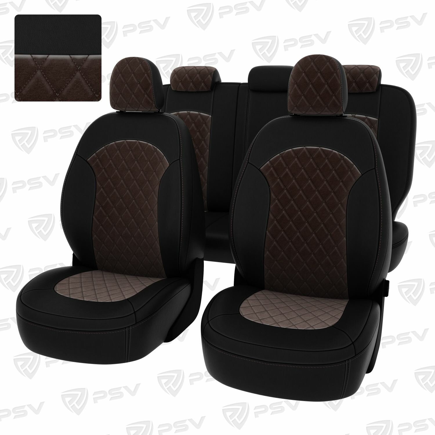 Купить Чехлы в машину PSV для Hyundai ix35 2010-2015 г. - ромб/отстрочка коричневая, черная экокожа + коричневый велюр "Оригинал"