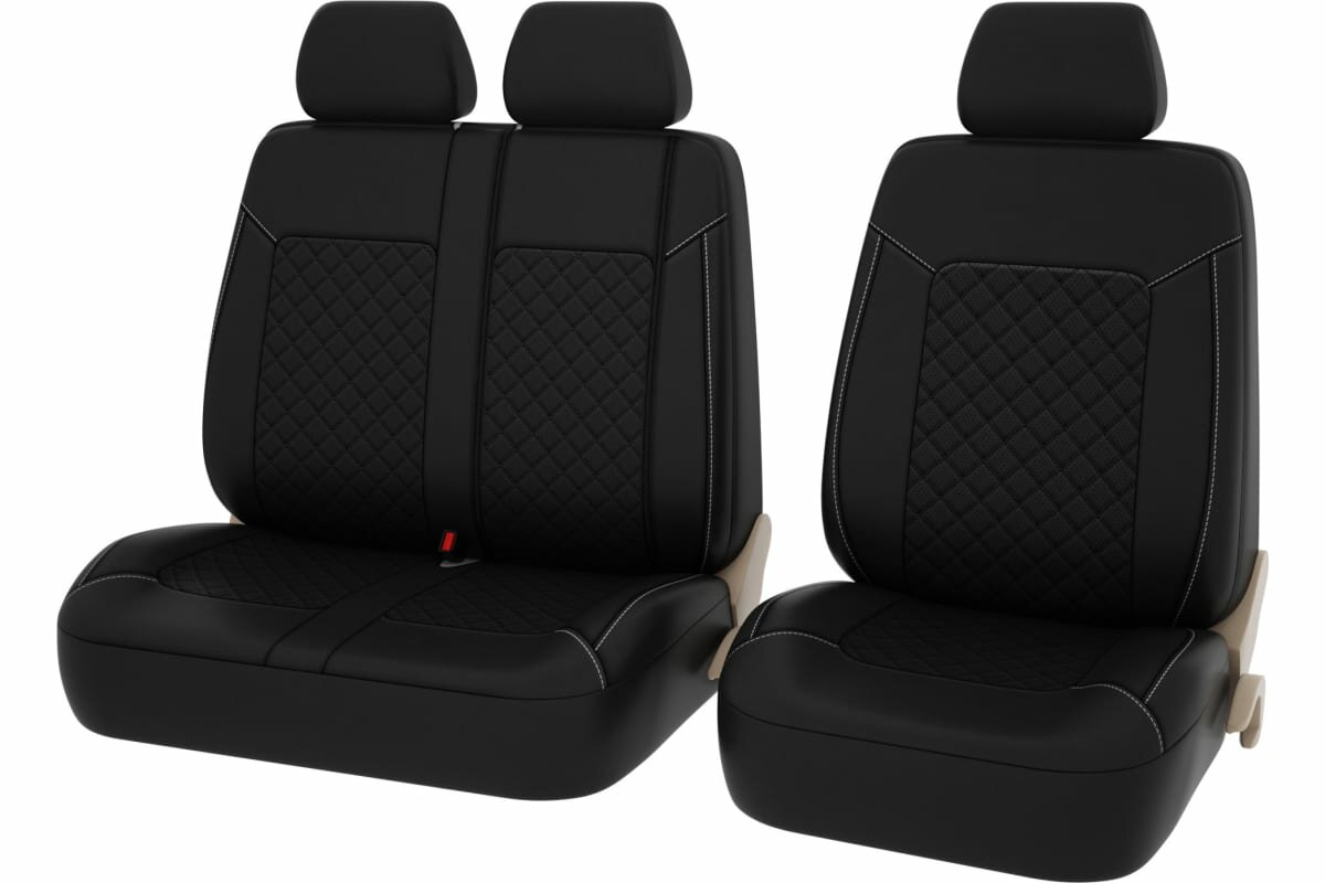 Чехлы в машину для коммерческого транспорта PSV Elegant Next TRANSIT (Черный/отстрочка черная), ромб + экокожа 135658