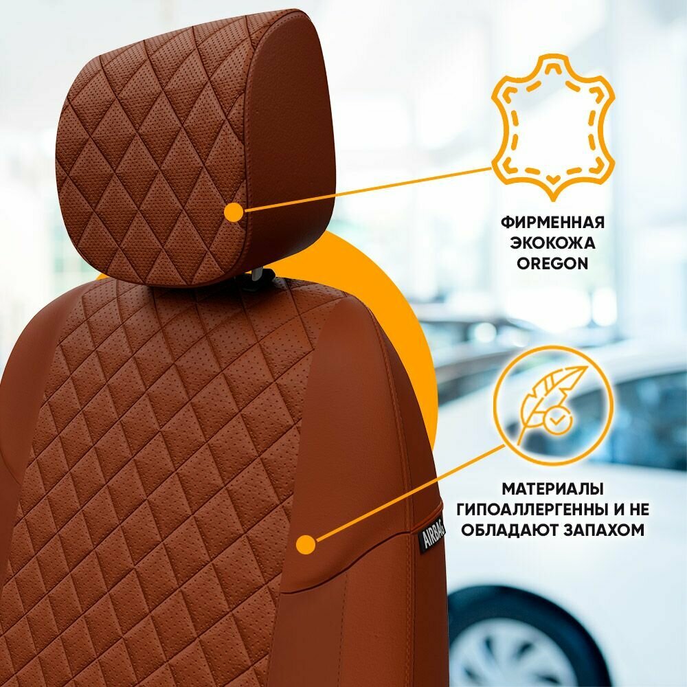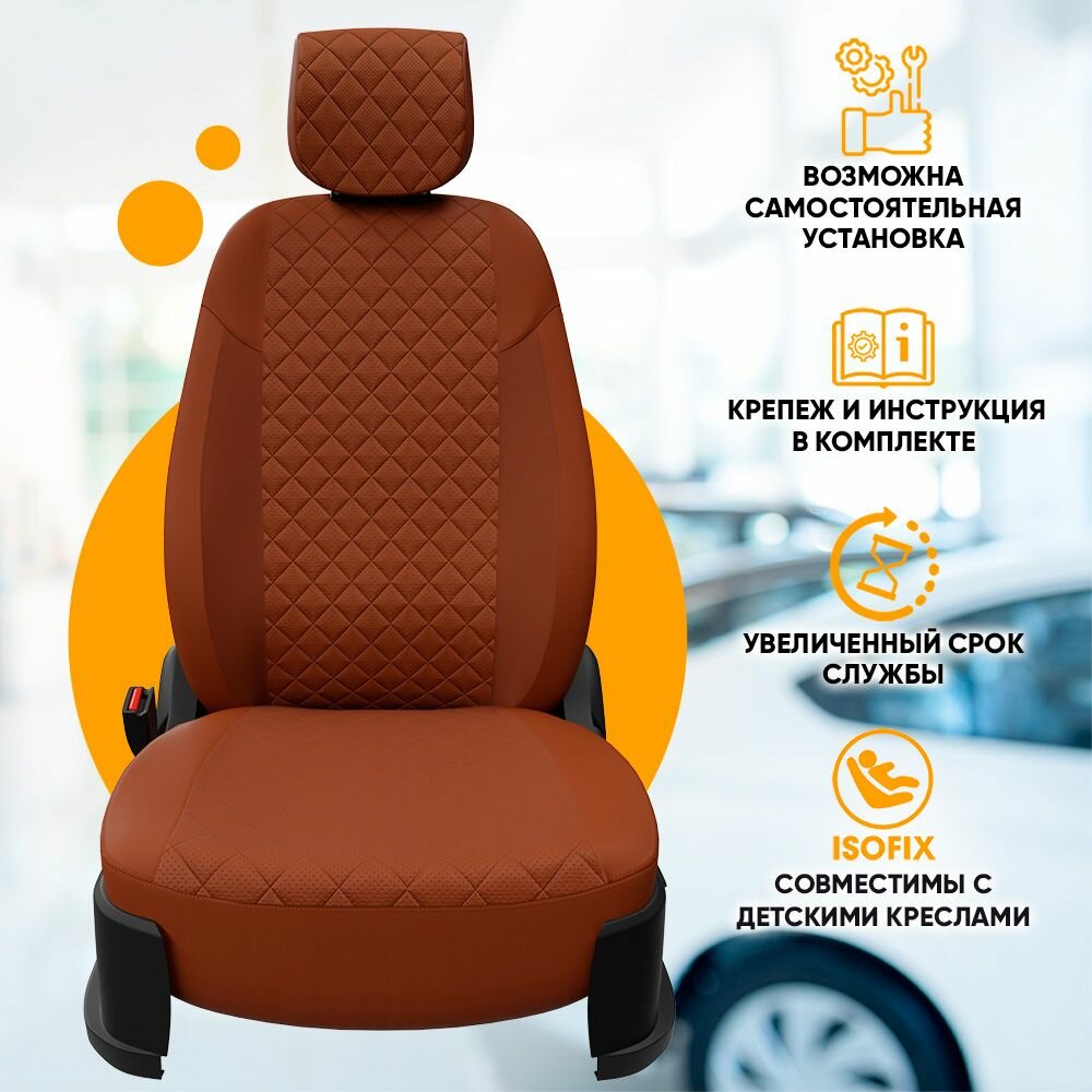 Авточехлы для Toyota Prius 2 2003-2011 Автопилот Коричневый Экокожа с ромбом ta-pr-p03-koko-r