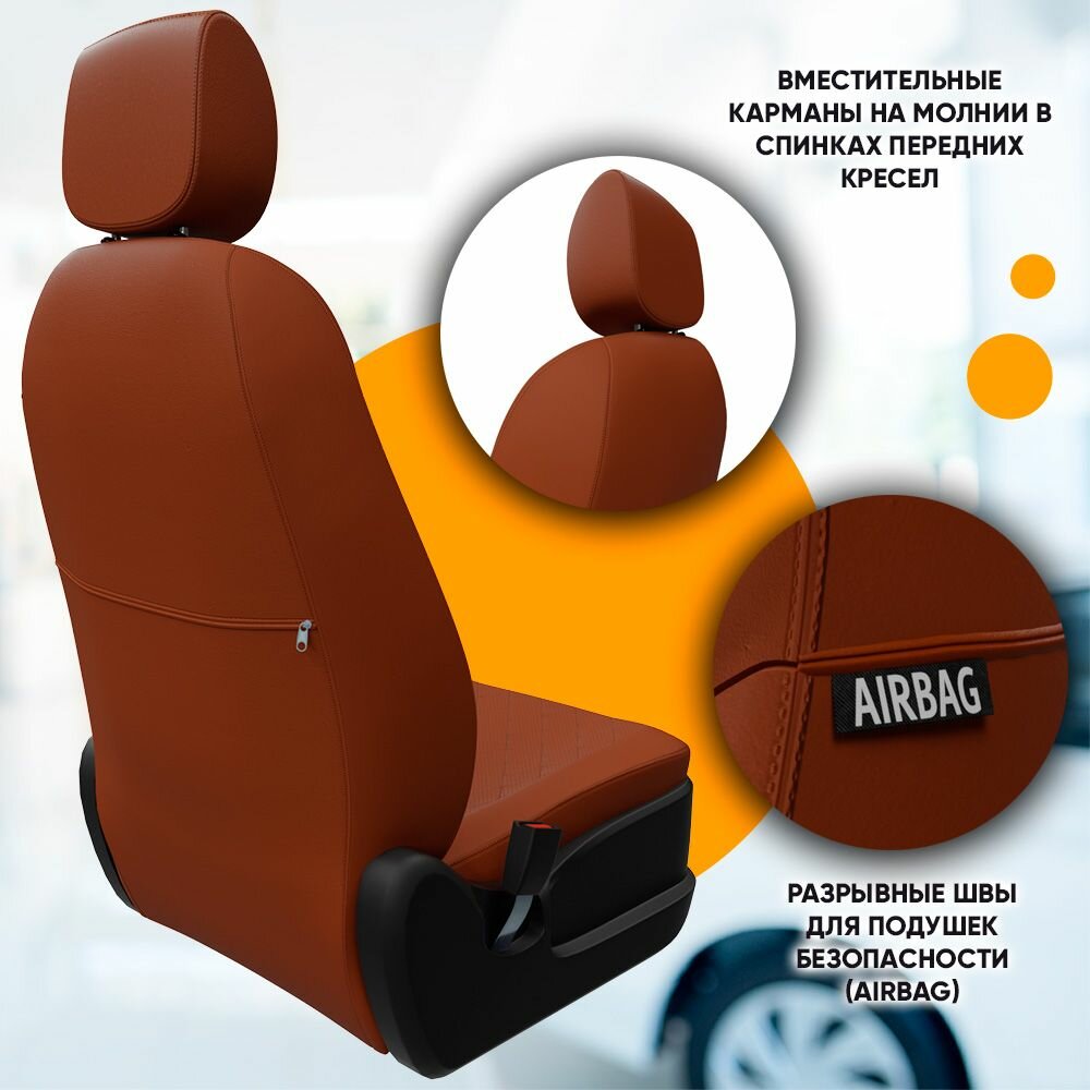 Авточехлы на Toyota Prius II (XW20) "Ромб" экокожа, коричневый