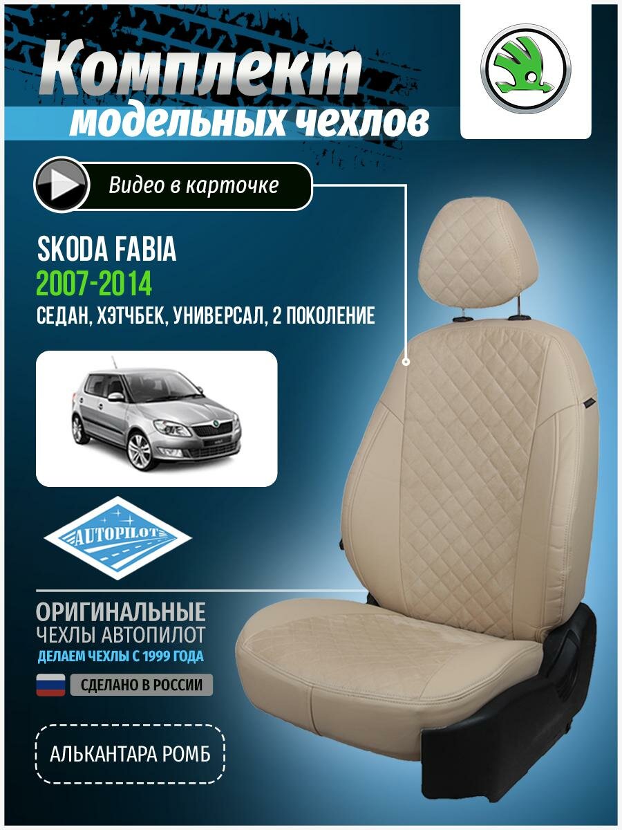 Купить Авточехлы для Skoda Fabia 2 2007-2014 Автопилот Бежевый Алькантара с ромбом sk-fa-f07-bebe-ar