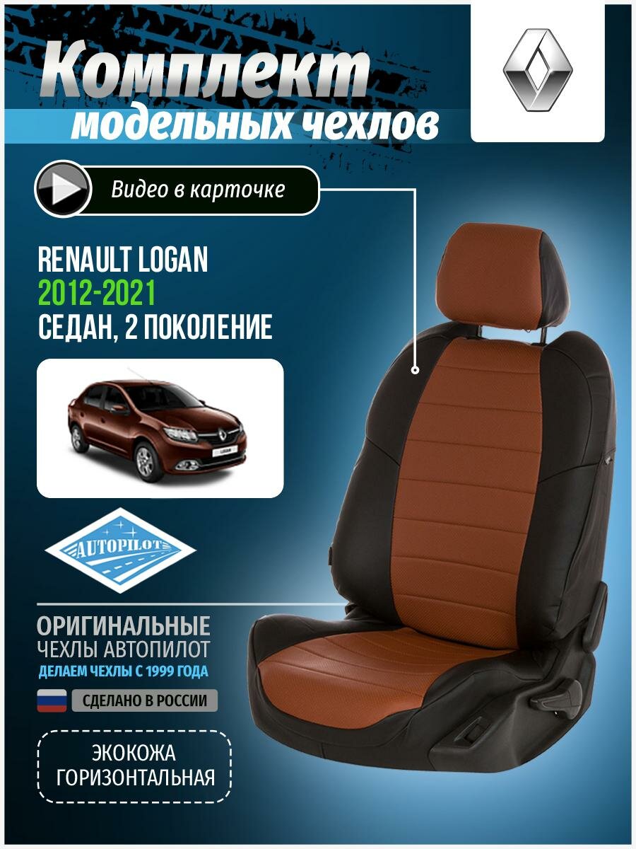 Чехлы для Renault Logan Sandero 2 2012-2020 Автопилот Коричневый Экокожа re-lg-l2-cheko-e