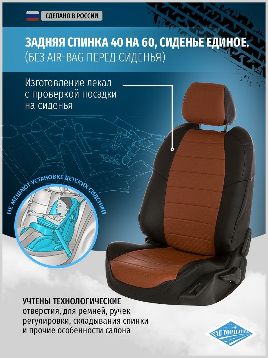 Модельные авточехлы АВТОПИЛОТ для Renault Logan II (задняя спинка - 40/60) / Sandero II (без подушек безопасности), c 2014г, экокожа, коричневые