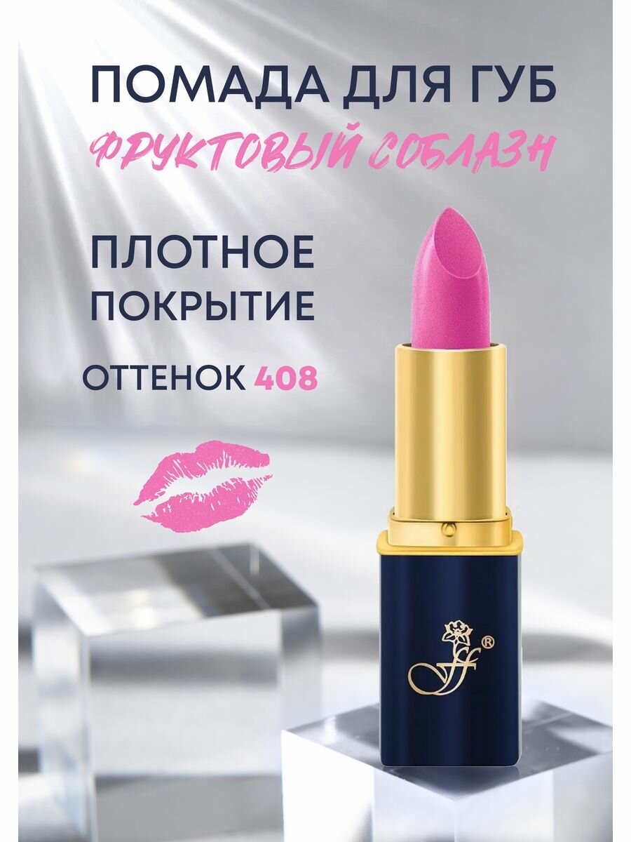 Помада для губ FFLEUR Фруктовый соблазн "Розовое пламя" №408 перламутровая