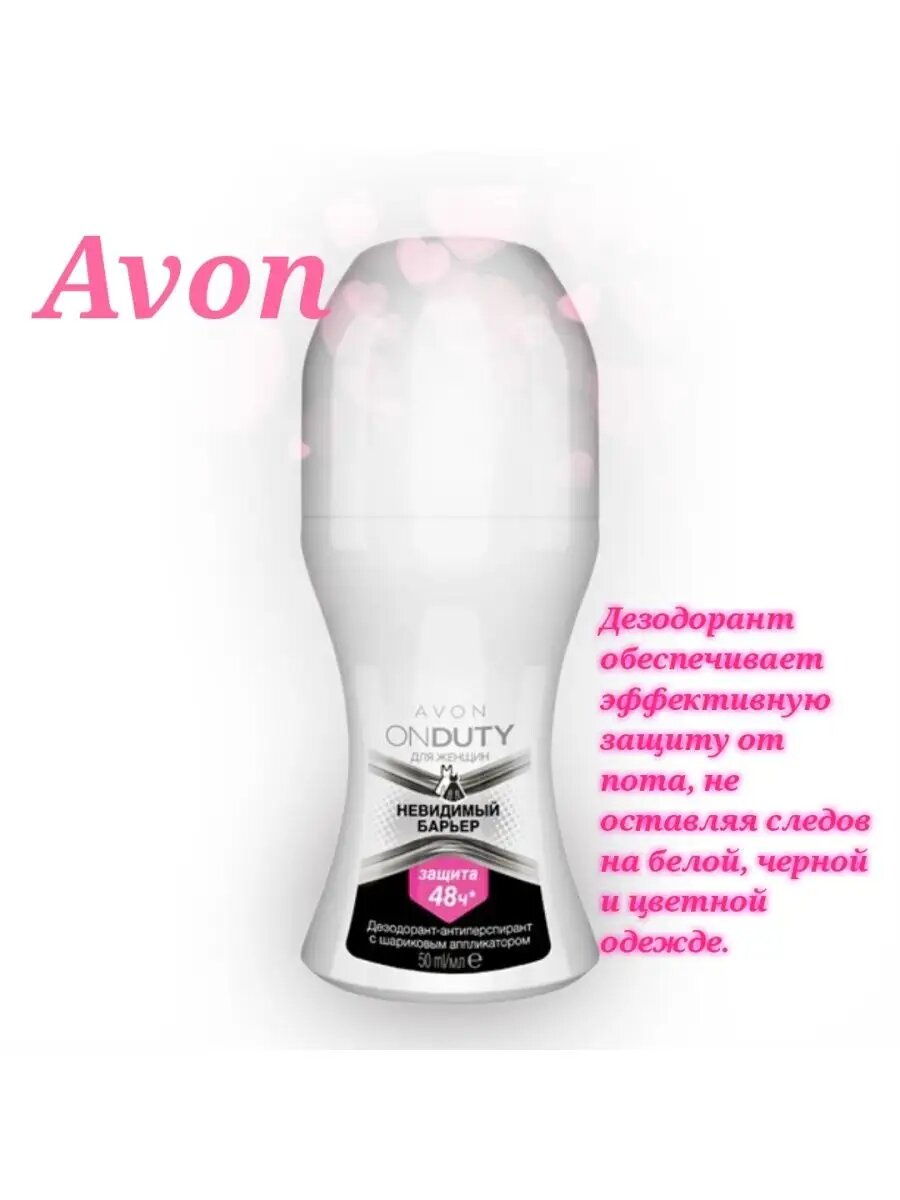 AVON On Duty Дезодорант-антиперспирант с шариковым аппликатором Невидимый барьер, для женщин, 50 мл