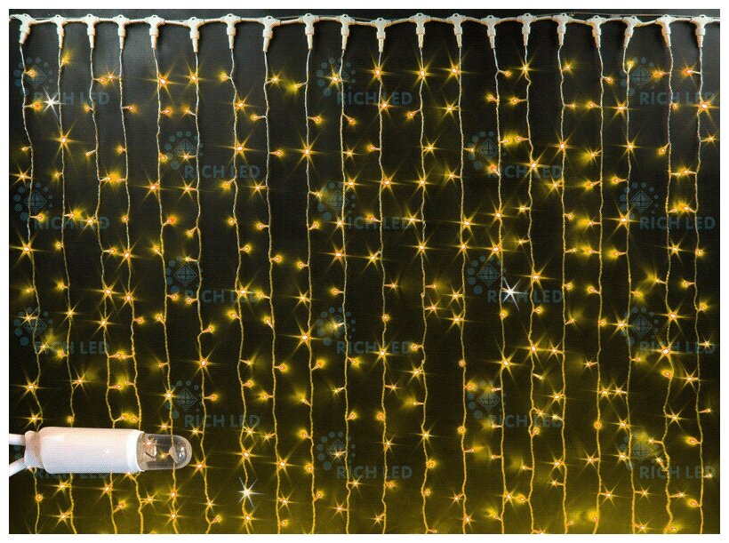 Свет Rich LED Гирлянда светодиодная Занавес желтая с мерцанием 220B, 1500 LED, провод белый, IP65 RL-C2*9F-CW/Y