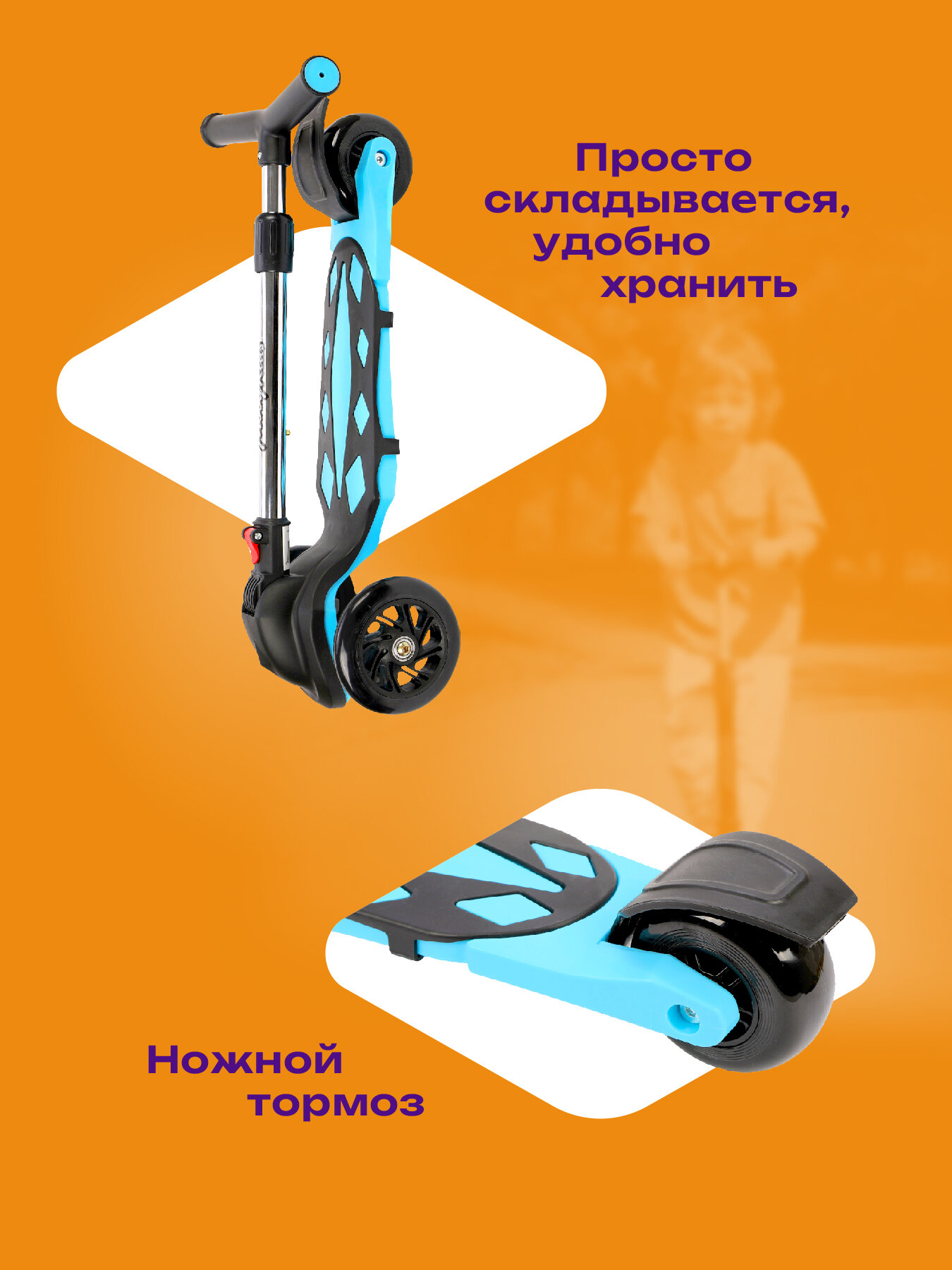Самокат трехколесный складной, 120 мм PVC, синий интересное: