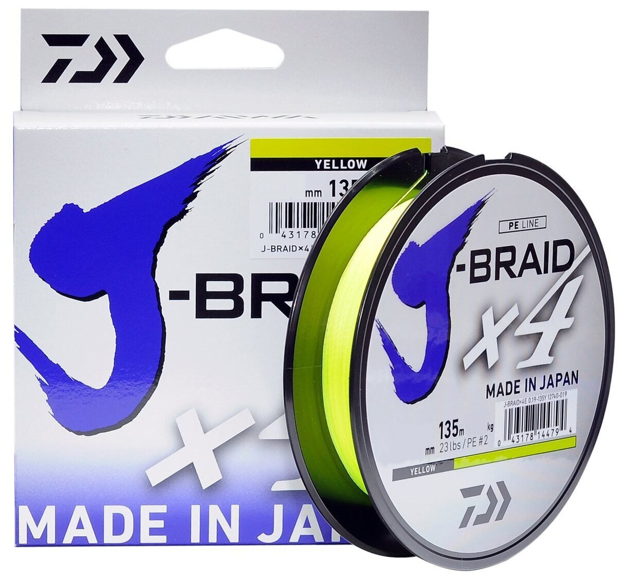 Плетеный шнур для рыбалки Daiwa J-Braid x4 желтый 135 метров 0.21 мм / плетенка для спиннинга