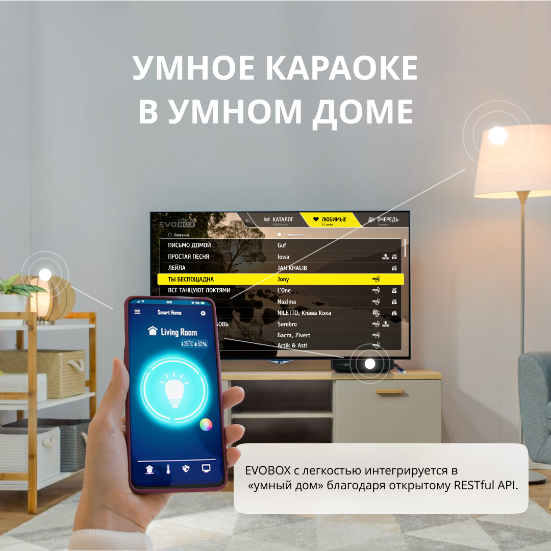 | Плюсы: | Пользуемся системой EVOBOX полгода, очень довольны! Компактная стильная приставка с огромной современной базой песен. Очень удобно обновлять каталог и добавлять новые песни!