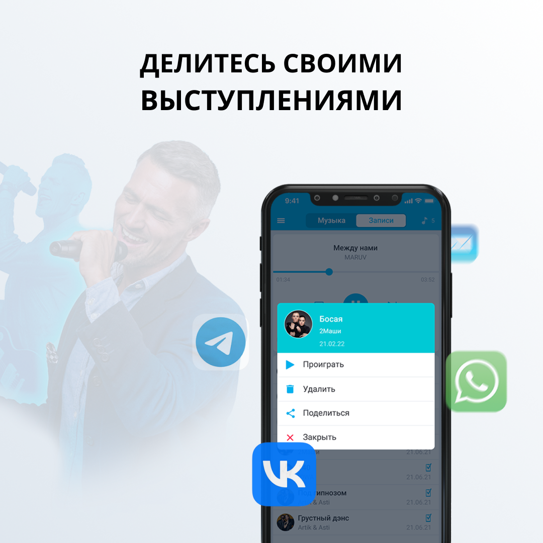 Качествестные хорошие минусовки Удобное приложении Быстрота и лояльность в обслуживании |