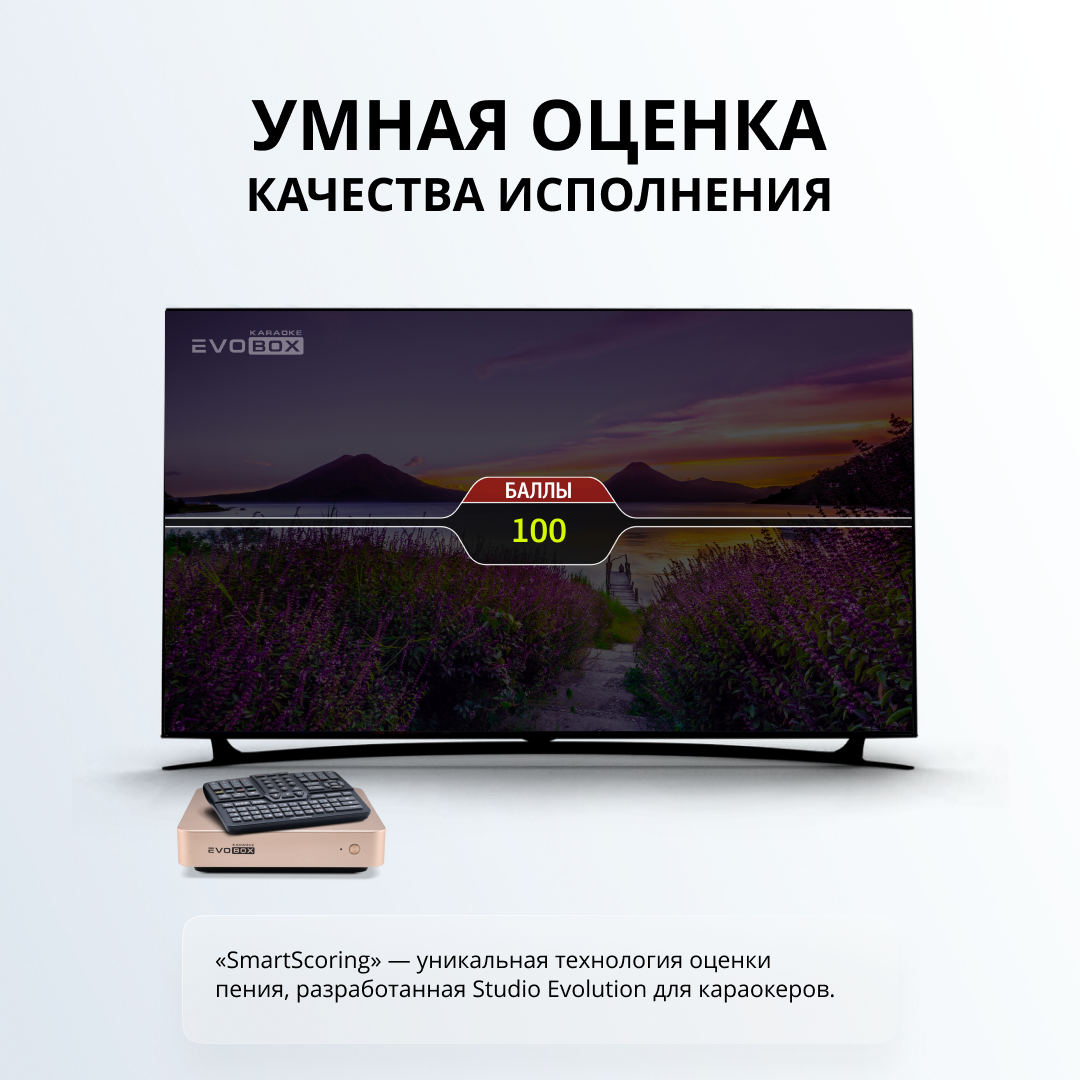 Evolution EVOBOX - компактная система караоке. 2000 популярных песен. Бесплатно 100 песен. 43000 песен в облачном хранилище