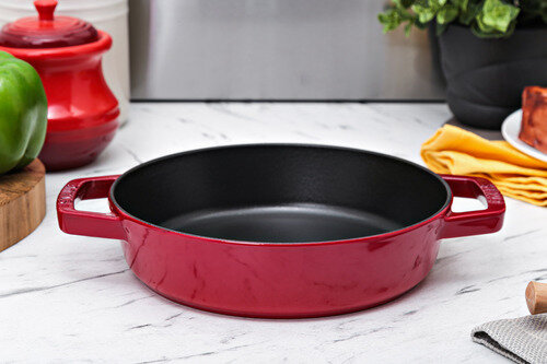 Сковорода круглая Staub,с чугунными ручками, вишневая, 20 см .