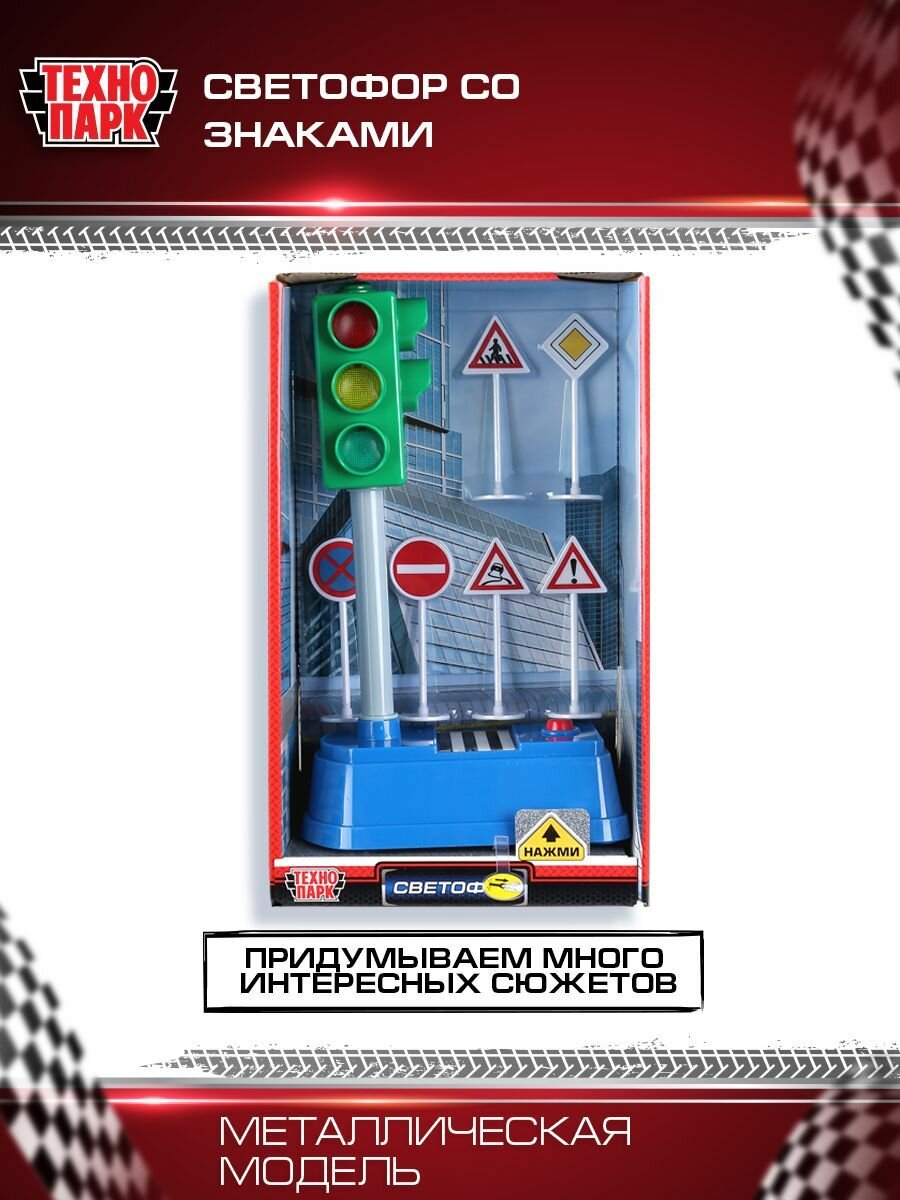 Модель светофор большой со знаками, 21 см Технопарк в коробке