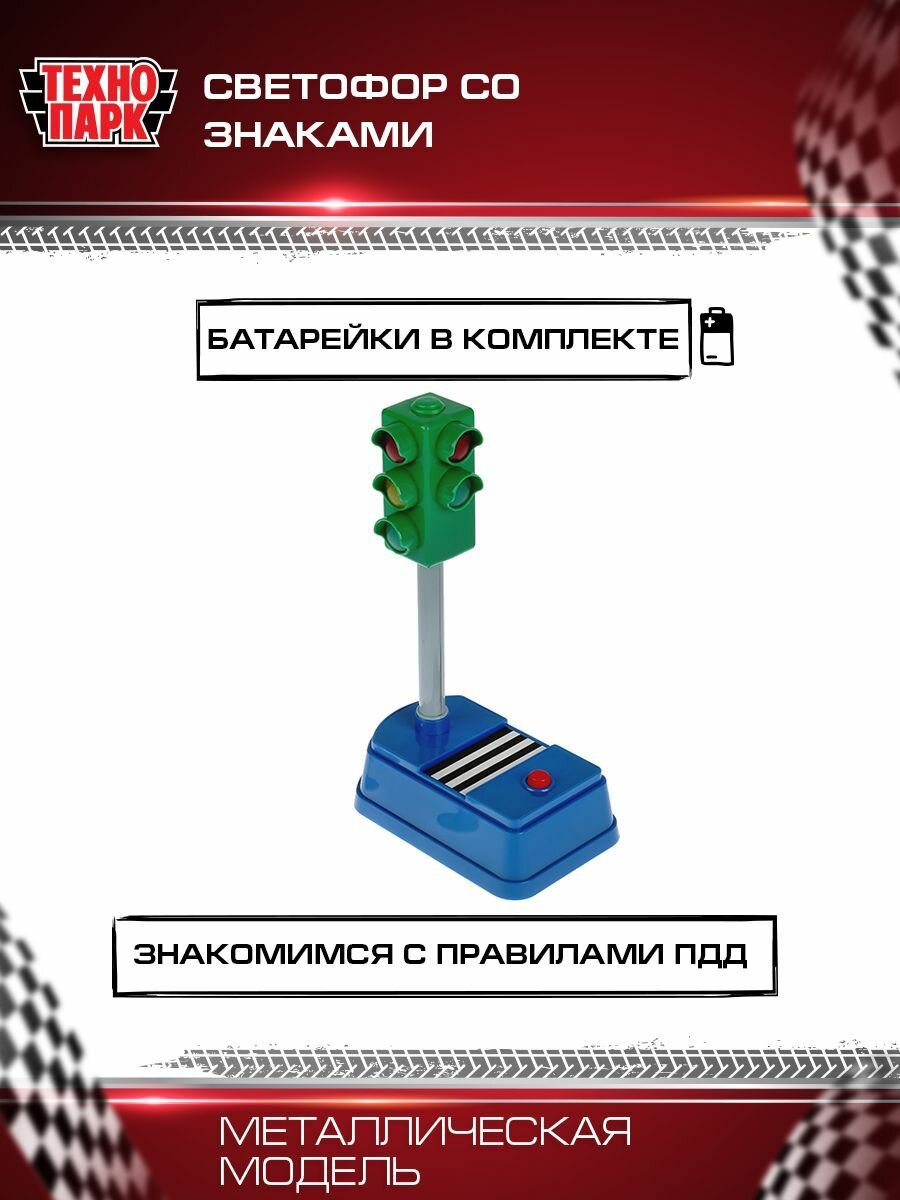 Светофор Технопарк на батарейках, свет и звук, 21 см, дорожные знаки (SB-18-30-OB)
