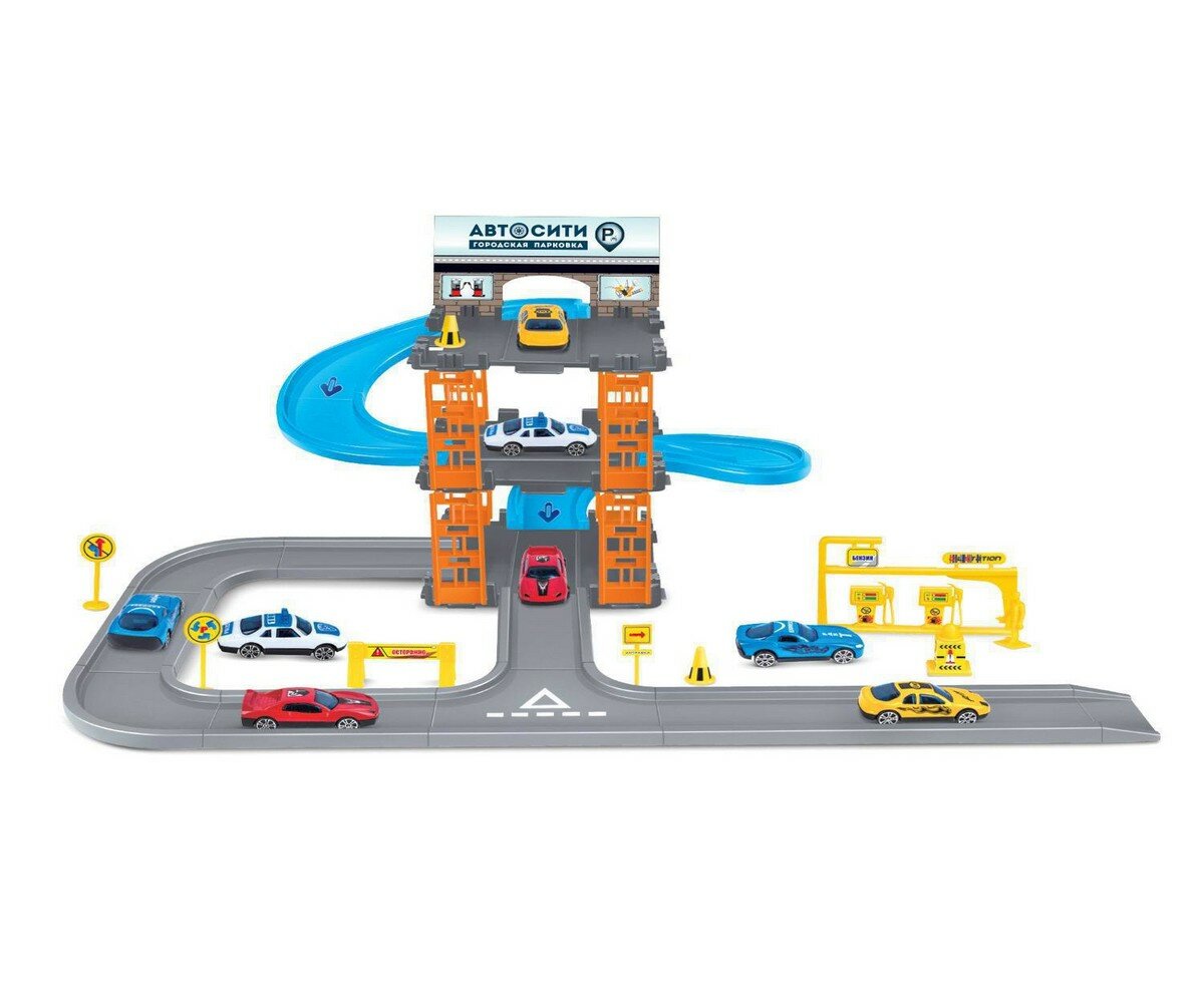 Парковка АвтоСити, 3-х уровневая в наборе с машинками и игровыми предметами