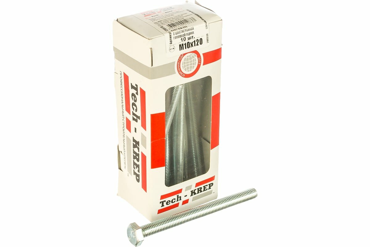 TECH-KREP '126518 Tech-Krep Болт DIN933 с шестигранной головкой оцинк. М10x120 10 шт - коробка с о
