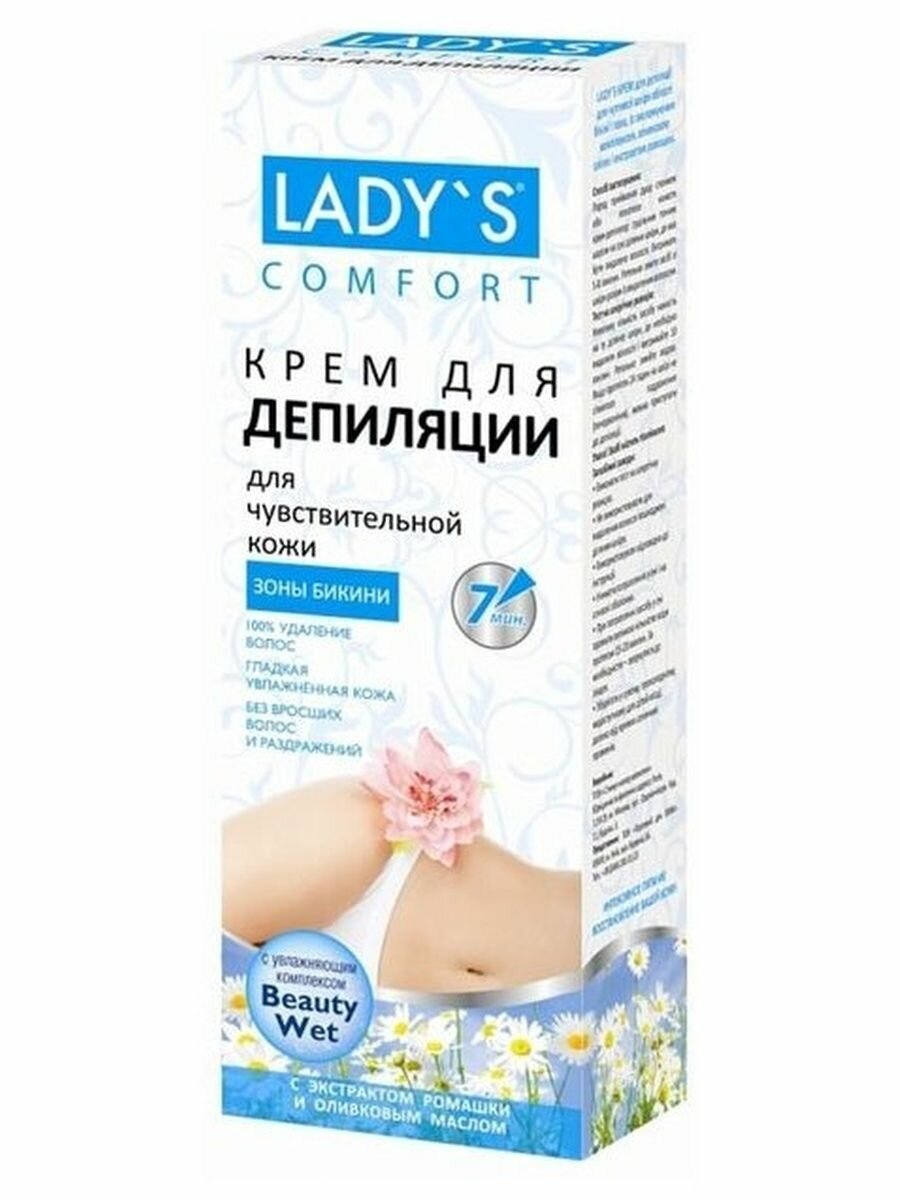 Крем для депиляции зоны бикини Lady'S Comfort с экстрактом ромашки и оливковым маслом для чувствительной кожи, 100мл