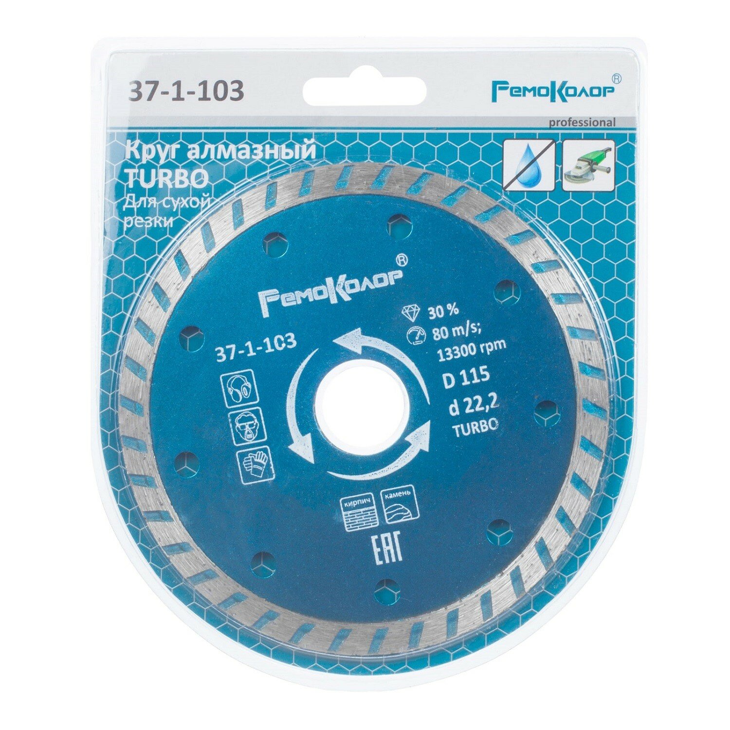 Диск алм. РемоКолор 115х7х22,2 турбо бет/кирп/кам 37-1-103