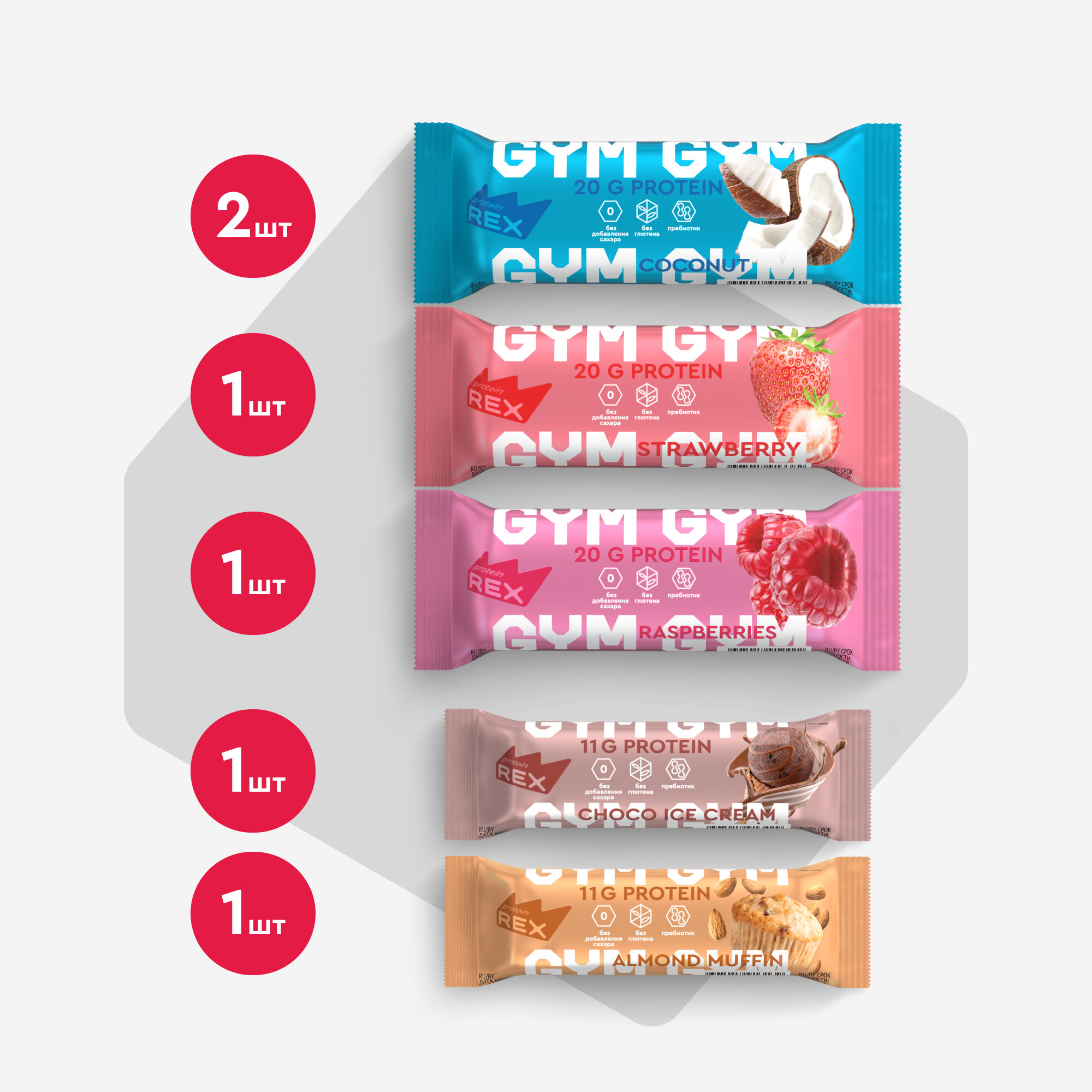 Протеиновые батончики без сахара ProteinRex GYM (Джим) малина-йогурт, 15 шт х 60 г, 180 ккал спортивное питание, ПП еда, спортивные батончики
