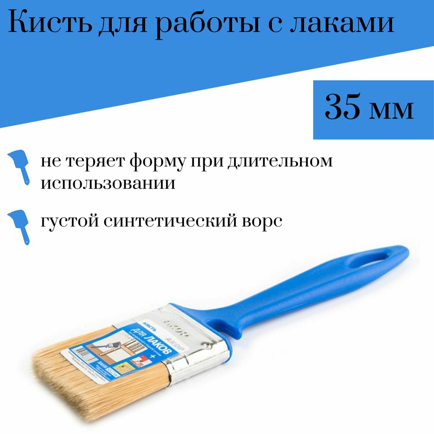 Кисть 35 мм Акор Лаки, 2 штуки