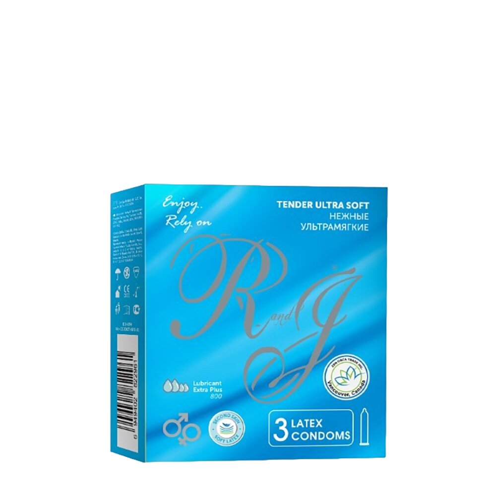 R and J Презервативы Tender ультрамягкие, дополнительная смазка, натуральный латекс, 3 штуки в упаковке/