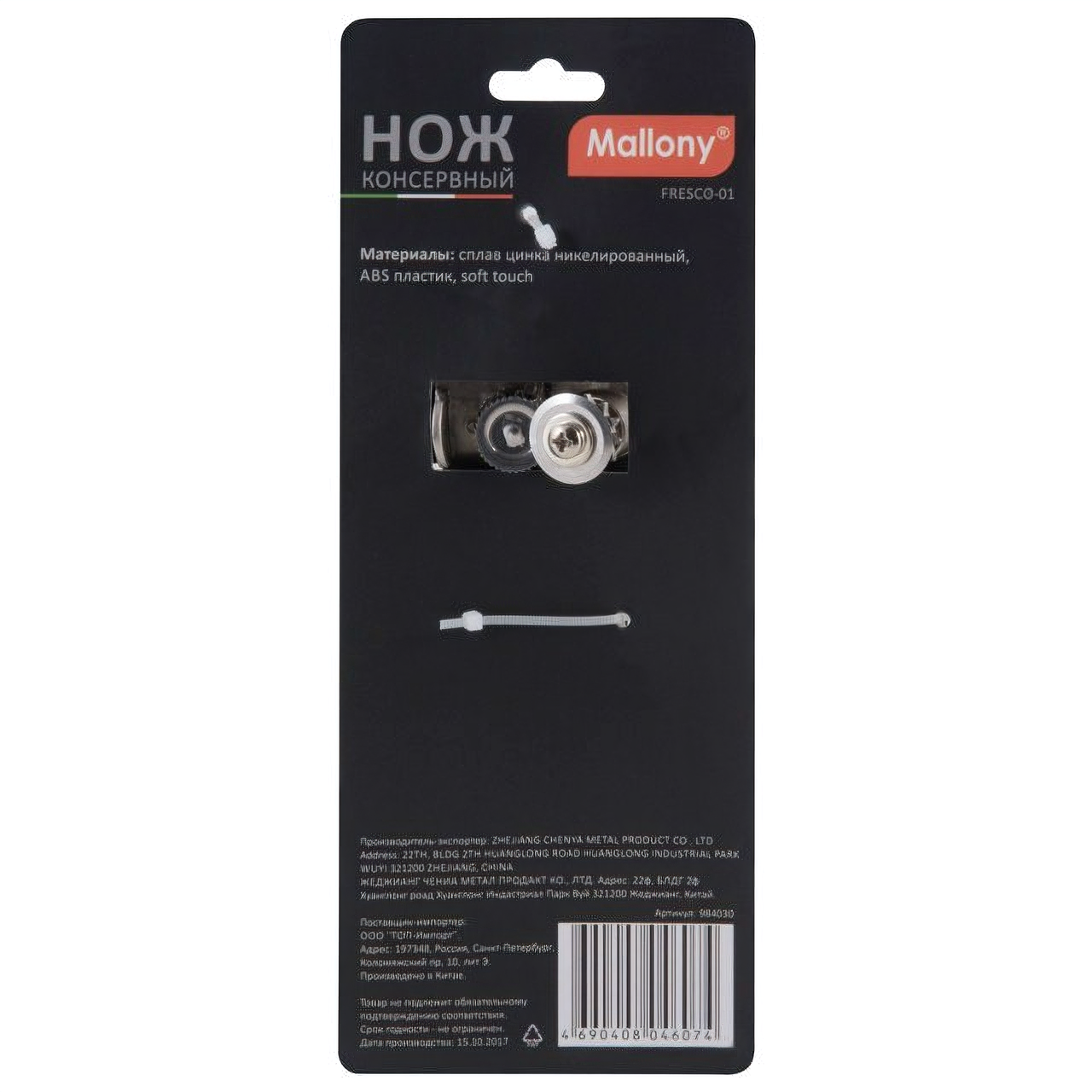 Консервный нож Mallony Fresco-01 984030 серебристый / черный