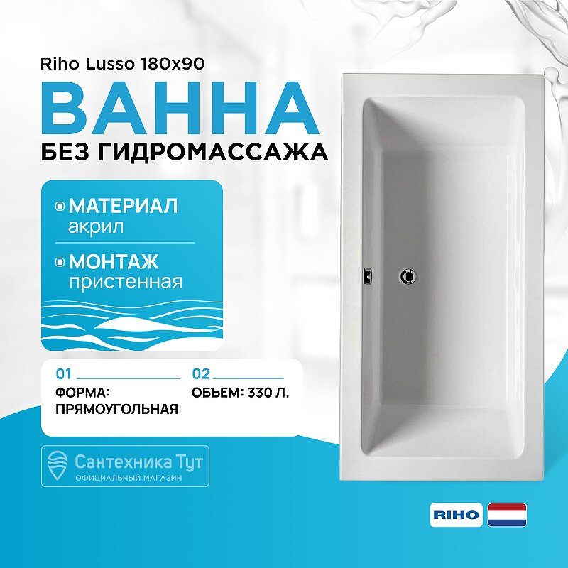 Купить Ванна акриловая RIHO Lusso (180x90) B026001005 без гидромассажа