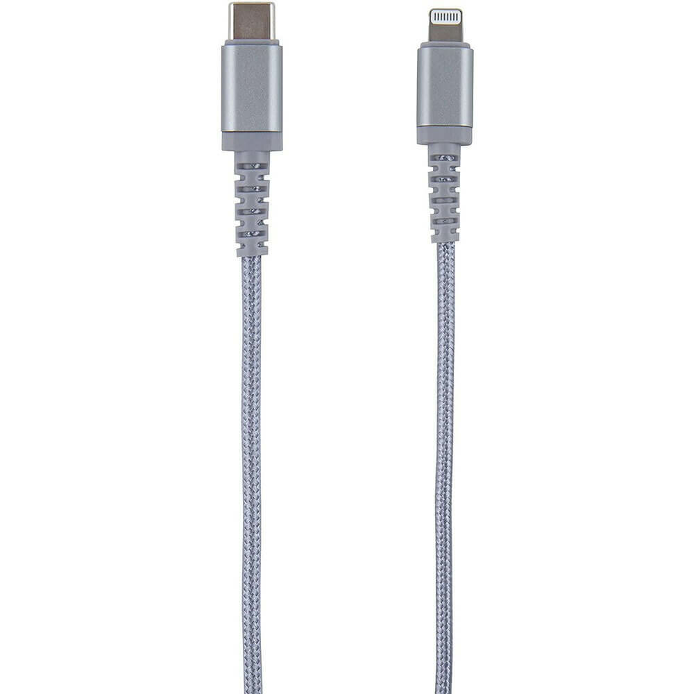 Дата-кабель Red Line Type-C – Lightning MFI для Apple, нейлоновая оплетка серебристый