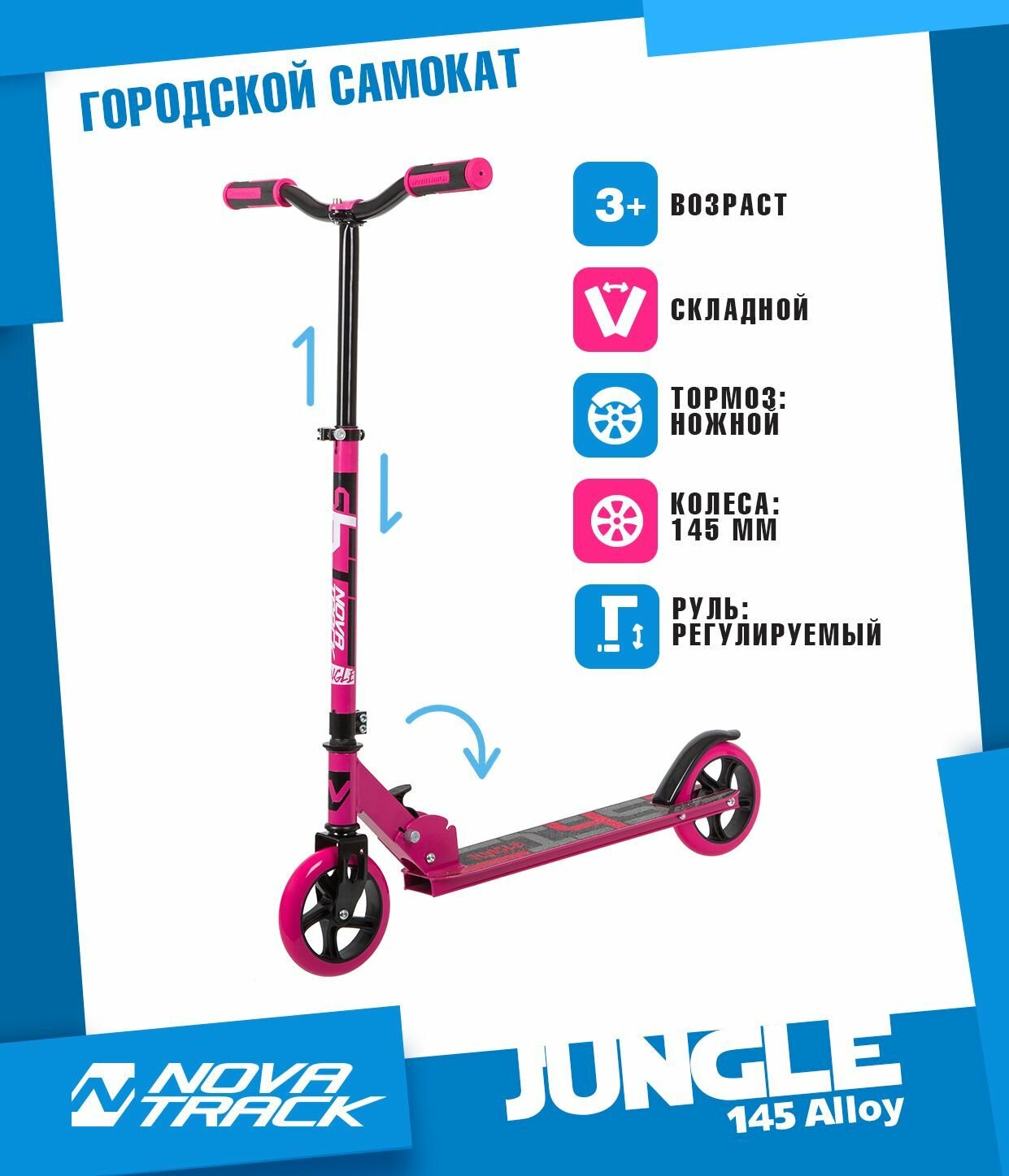 Самокат 2-х колесный 145 мм городской детский novatrack jungle алюминиевый складной 50 кг розовый 145.jungle.pn20