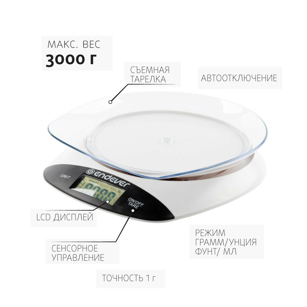 Электронные весы Endever 80842 нагрузка до 3 кг цвет белый интересное: