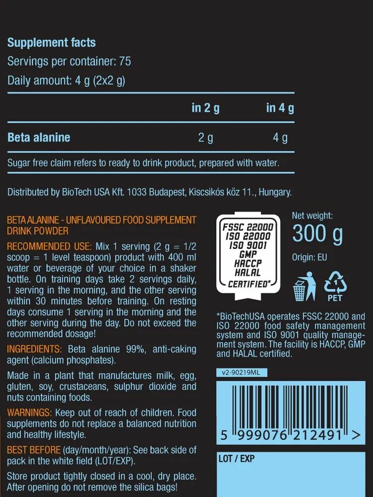 Бета-Аланин Biotech Beta Alanine 300 гр интересное: