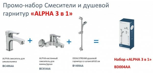 Промо-набор 3 в 1 смесители и душевой гарнитур Ideal Standard ALPHA BD004AA
