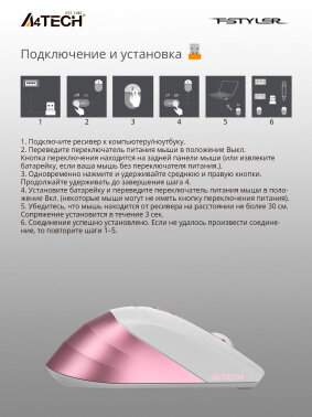 СохранитьМышь A4 Fstyler FG35, оптическая, беспроводная, розовый+белый интересное: